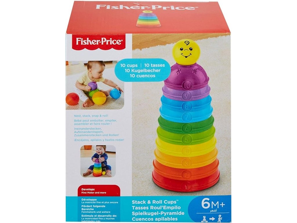 Fisher-Price je řada vysoce kvalitních hraček pro miminka a děti v každé fázi vývoje. Od hraček stimulujících pohyb a koordinaci, přes jednoduché hádanky, až po ty, které rozvíjejí představivost a kreativitu. S hračkami Fisher-Price je pěstování a učení zábava!Kulaté kelímky Fisher Price jsou nádoby, které lze srolovat, spojovat a vkládat do sebe a nabízejí nekonečné možnosti pro objevování mnoha užitečných věcí. Sada obsahuje 10 barevných nádob s drážkami pro lepší usazení a snadné vkládání. Různé barvy, velikosti a čísla pomáhají rozvíjet schopnosti včasného rozpoznávání. Smějící se koule s rolničkami se vejde do každé nádoby. Můžete jej také umístit na vršek celé hromádky!