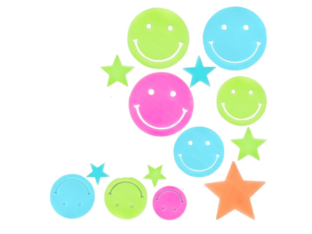 - Barva: Pastelové smajlíky a hvězdy v několika barvách + fluorescenční efekt