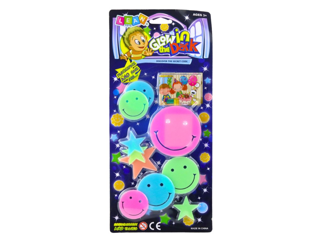 - Barevné fluorescenční samolepky – smajlíky a hvězdy (10 kusů)