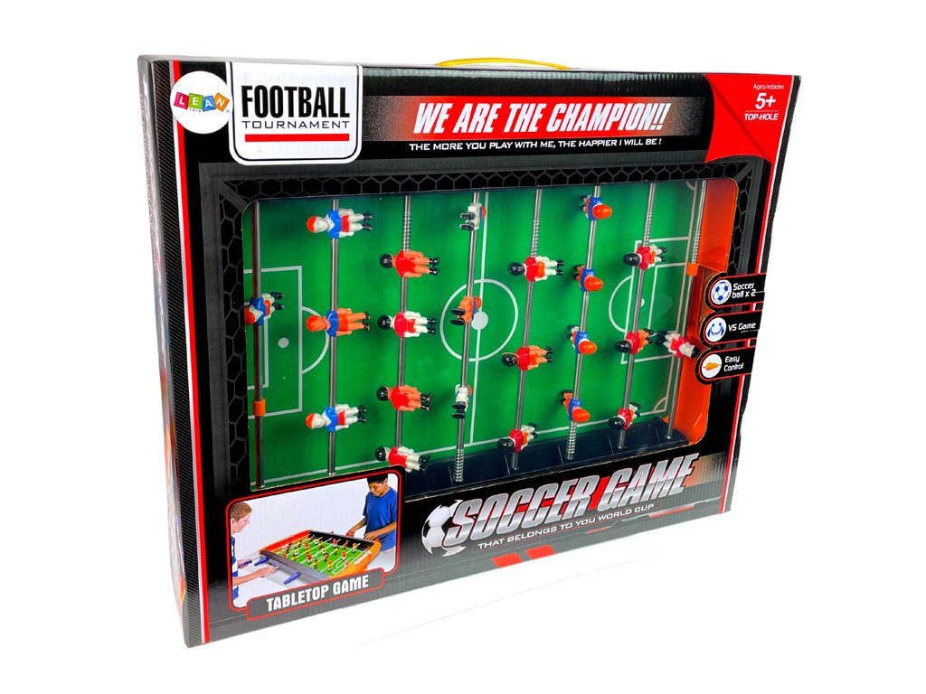 Foosball je balena ve velké dekorativní krabici, takže je ideální jako dárek pro chlapce staršího pěti let.