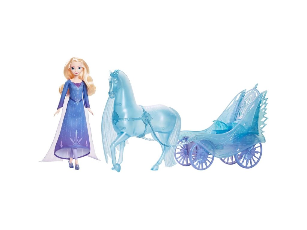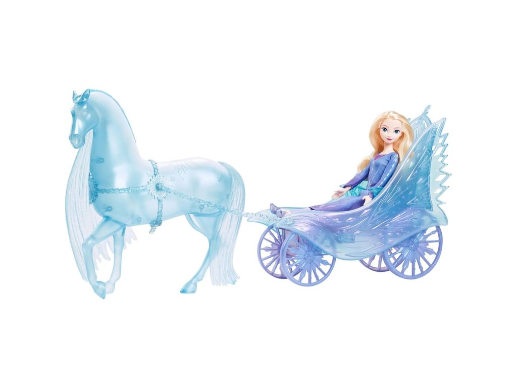 Zimní kočárek Frozen Elsa a Nokk JBG56Se sadou pro panenku Elsa a kočárek Nokk mohou děti popustit uzdu své touze po dobrodružství! Panenka Elsa přichází se svou náladovou interpretací bájného vodního ducha ve tvaru koně Nokka, který táhne kouzelný kočár s pracovními koly. Panenka Elsa má odnímatelné šaty a boty vhodné na jakoukoli cestu, od spěchu na oslavu na čas až po cestování do az Ledového paláce.