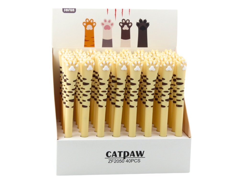 Gelové pero ve žlutém provedení s hnědými pruhy je perfektní kombinací pohodlí při psaní a originálního vtipného vzhledu. Jeho flexibilní pouzdro z měkké gumy zaručuje pohodlí při používání a zároveň je zajímavým dekorativním prvkem - zejména díky půvabné tlapce ve tvaru kočičí tlapky s výstupky. Díky jemným pruhům v tygřím stylu propiska vyčnívá z klasických kancelářských doplňků.