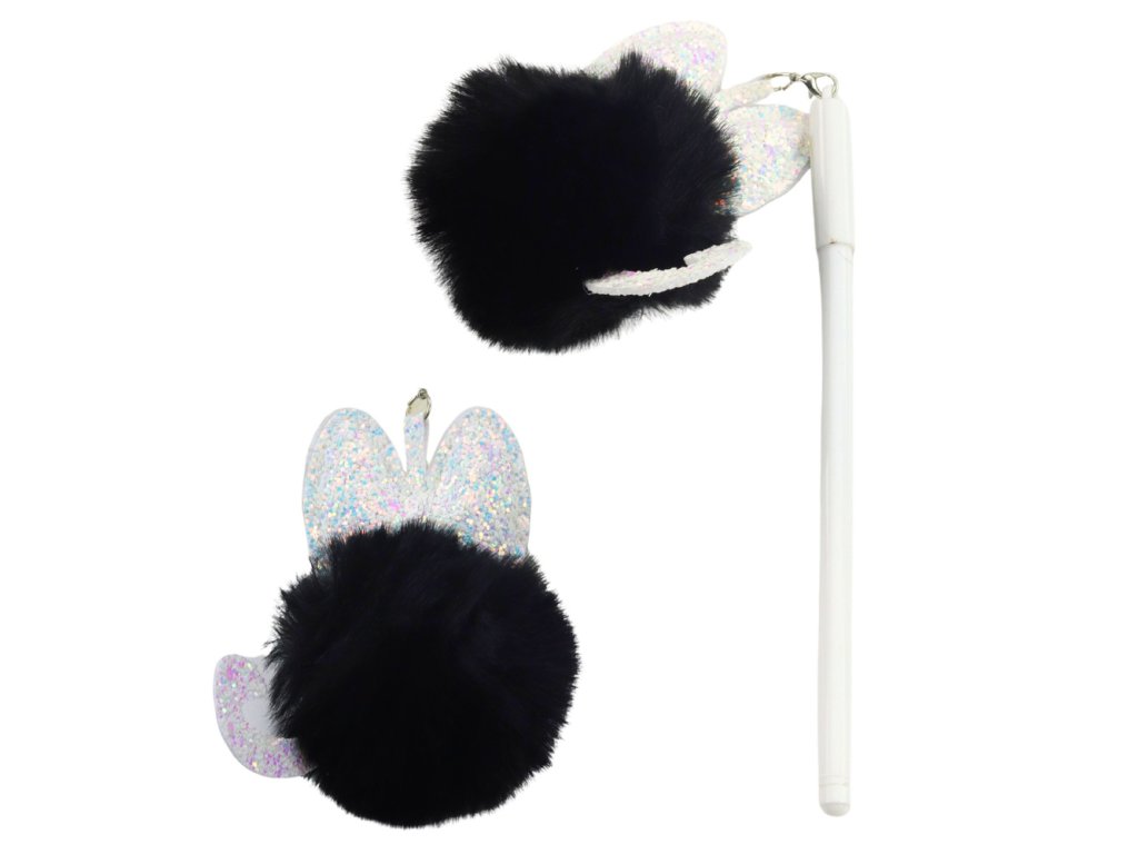 - Gelové inkoustové pero s bambulí – černé s ušima