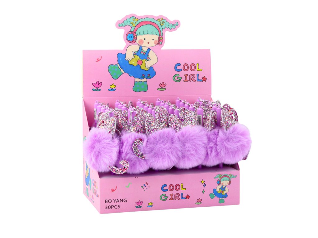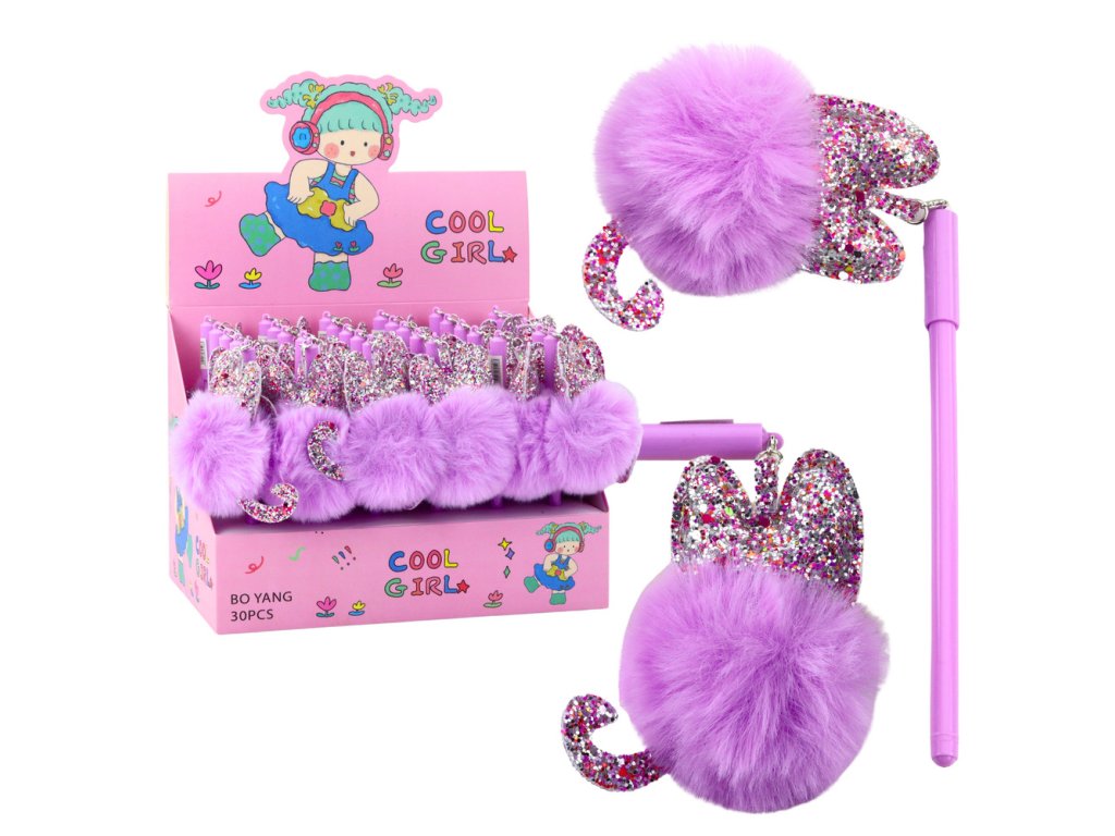 - Gelové inkoustové pero s bambulí – fialové s ušima