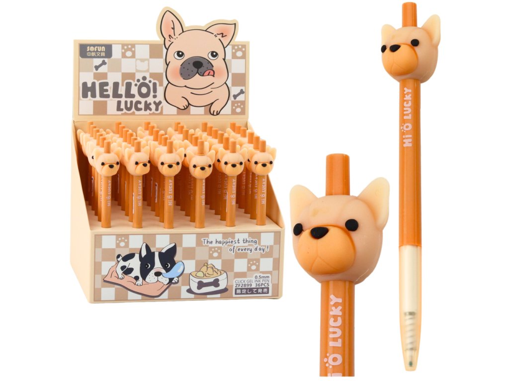 Gelové pero s dekorativním motivem pejska je unikátní produkt, který spojuje funkčnost s originálním designem. Okouzlující 3D psí hlava umístěná na konci pera přitahuje pozornost a přesný 0,5mm hrot a modrý inkoust z něj dělají perfektní pro každodenní psaní.