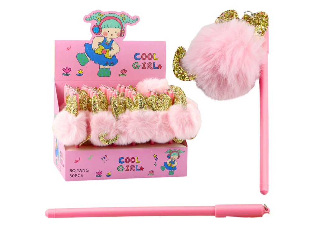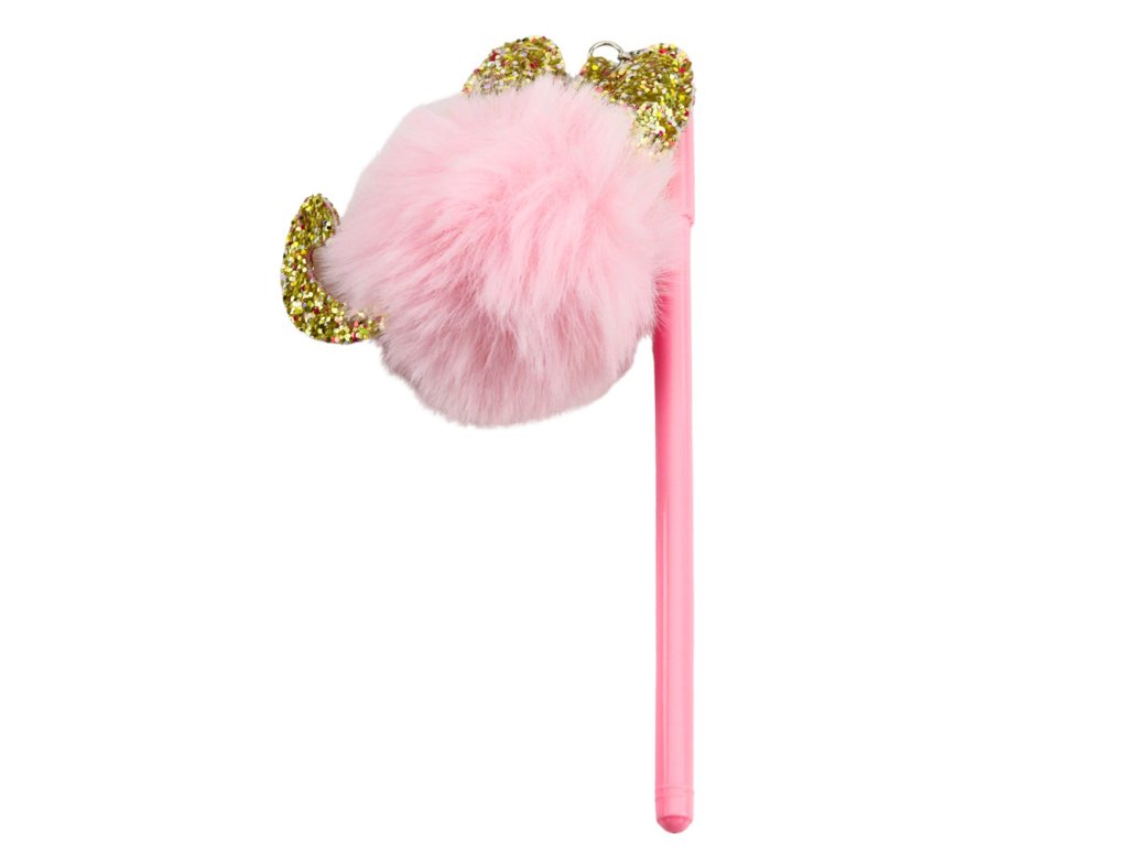 - Gelové inkoustové pero s bambulí – růžové s ušima