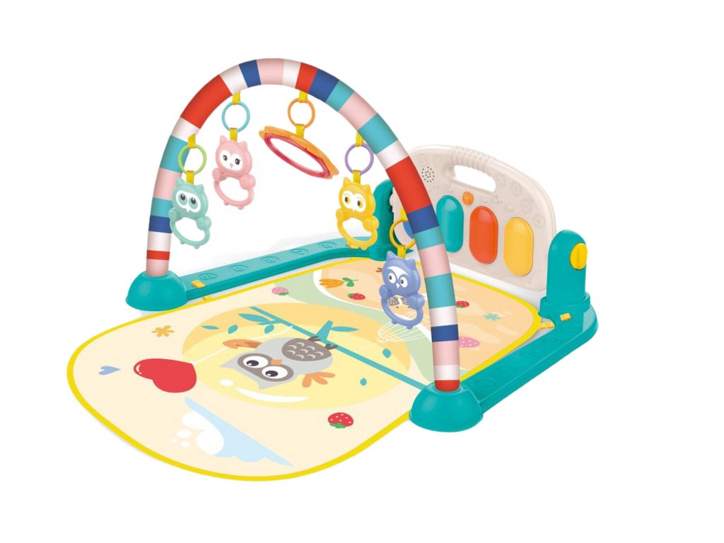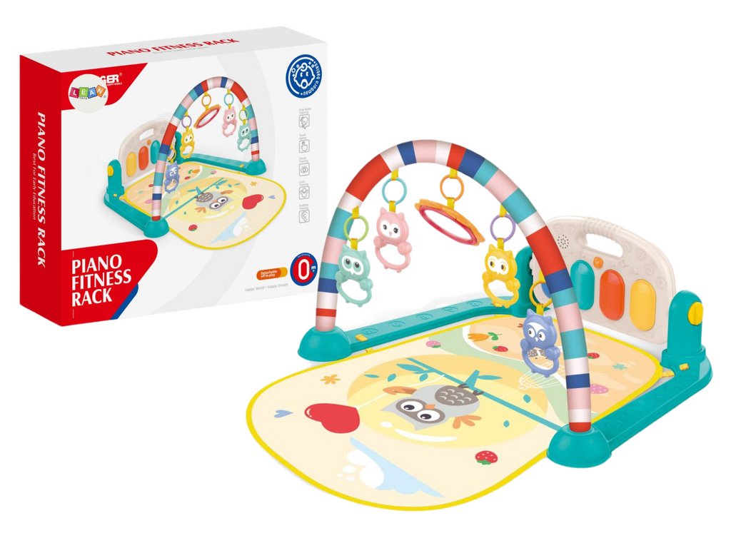 Barevná a měkká podložka s veselým motivem sovičky, která zajišťuje pohodlí a bezpečí při hraní. Klavír umístěný na základně podložky reaguje na dotek dítěte, vydává veselé zvuky a melodie, stimuluje sluch a podporuje fyzickou aktivitu.
