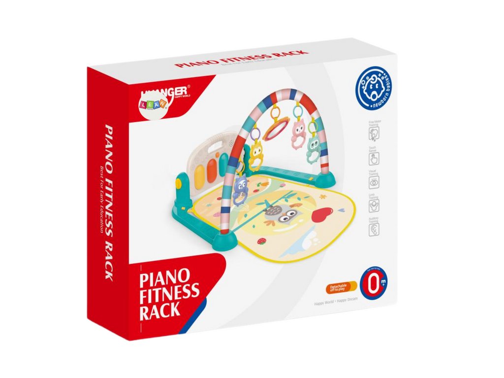 Barevná a měkká podložka s veselým motivem sovičky, která zajišťuje pohodlí a bezpečnost při hraní. Piánko umístěné na základně podložky reaguje na dotek dítěte a vydává veselé zvuky a melodie, stimuluje sluch a podporuje fyzickou aktivitu.