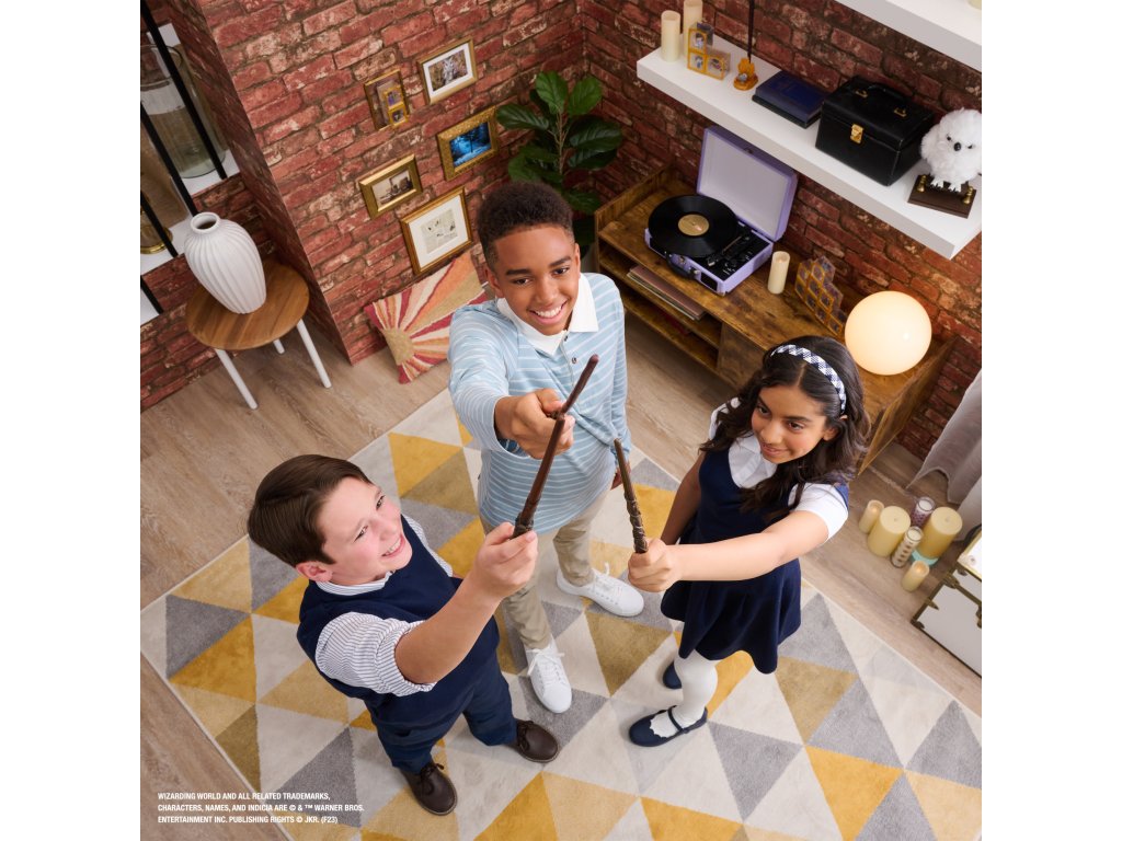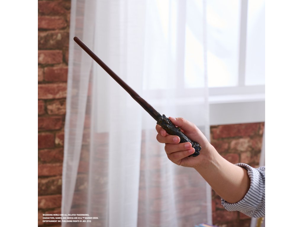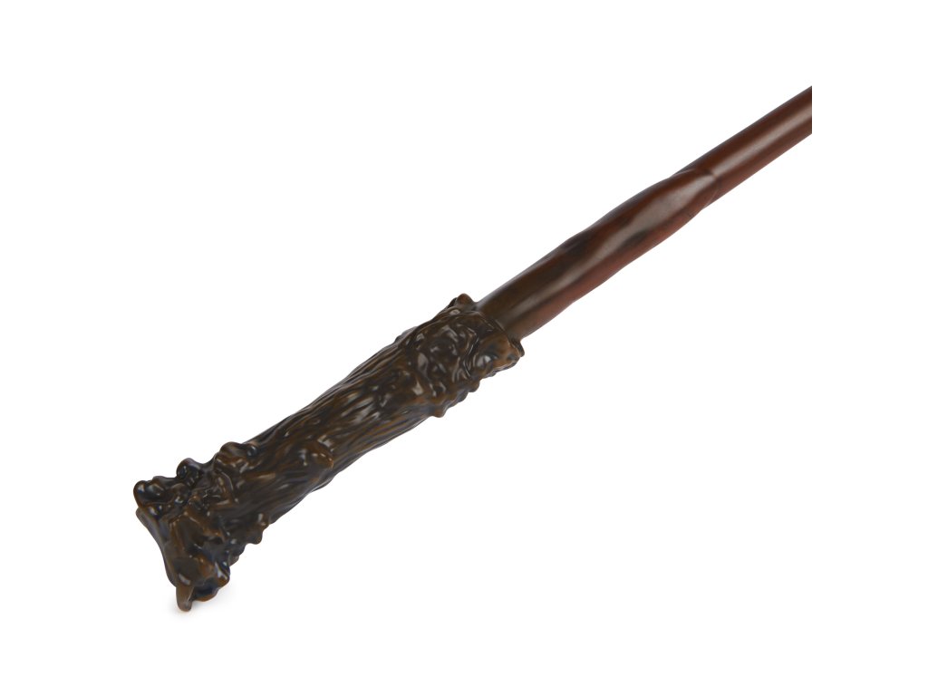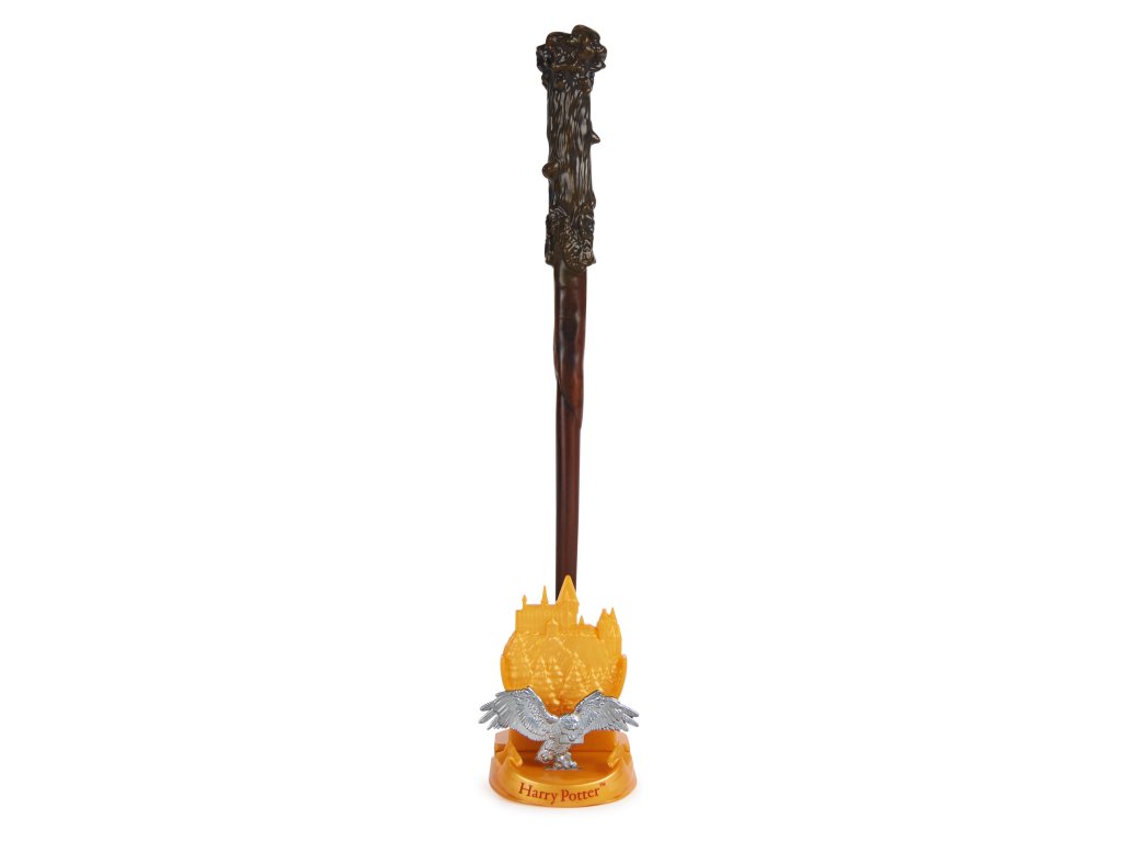 Hračka je hnědá a má jedinečné vzory, díky čemuž připomíná hůlku čaroděje Harryho Pottera . Hůlka obsahuje kovový, zlatý stojánek z Bradavic se jménem postavy, který lze do krabice umístit svisle nebo vodorovně. Součástí je i lisovaný doplněk – Hedvika s Harrym