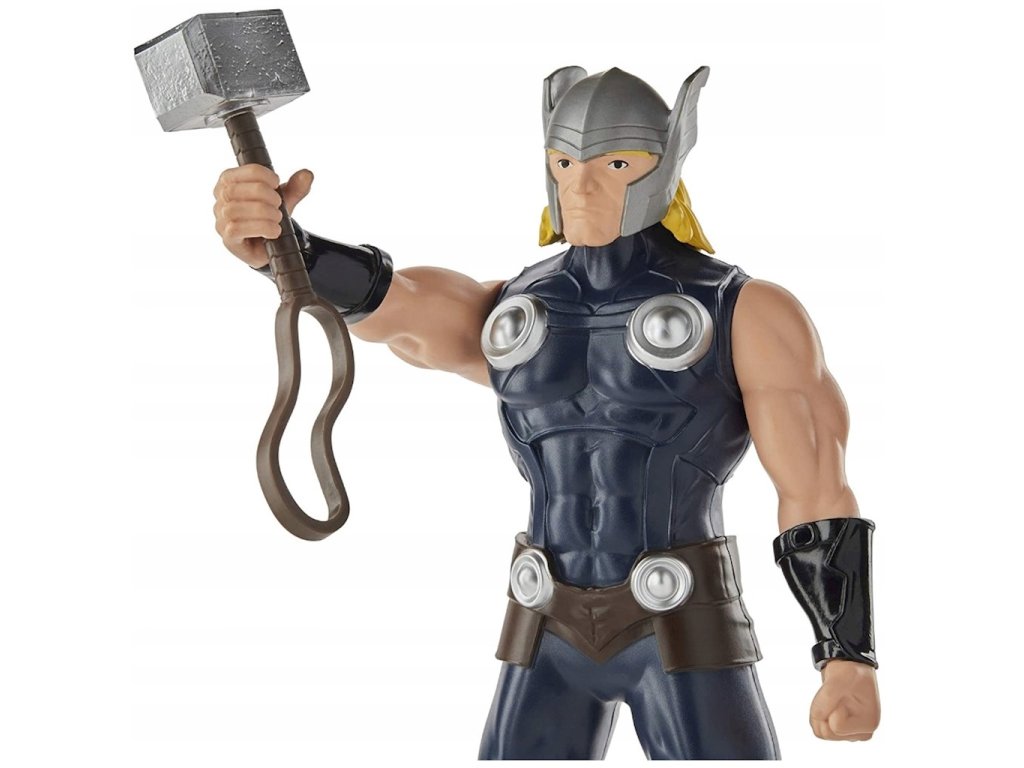 Thor je fiktivní postava, superhrdina, známý z komiksů vydávaných nakladatelstvím Marvel Comic. Tato postava je založena na bohu Thorovi ze severské mytologie. Thor je jedním ze zakladatelů Avengers. Není skutečně nesmrtelný. Prodloužení jeho života, který trvá mnoho tisíciletí, závisí na pojídání jablek Idunn. Jako syn Odina a Gaii je nejsilnějším z Asgarďanů. Jeho zbraní je kladivo Mjolnir, s jehož pomocí dokáže létat a metat blesky.Figurka stojí stabilně a má pohyblivé ruce. Thor má jasně definované svaly a tvarovanou strukturu kostýmu.