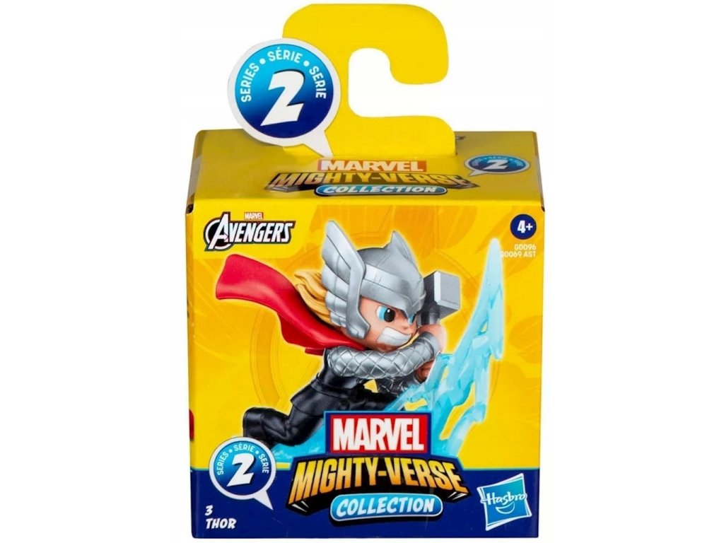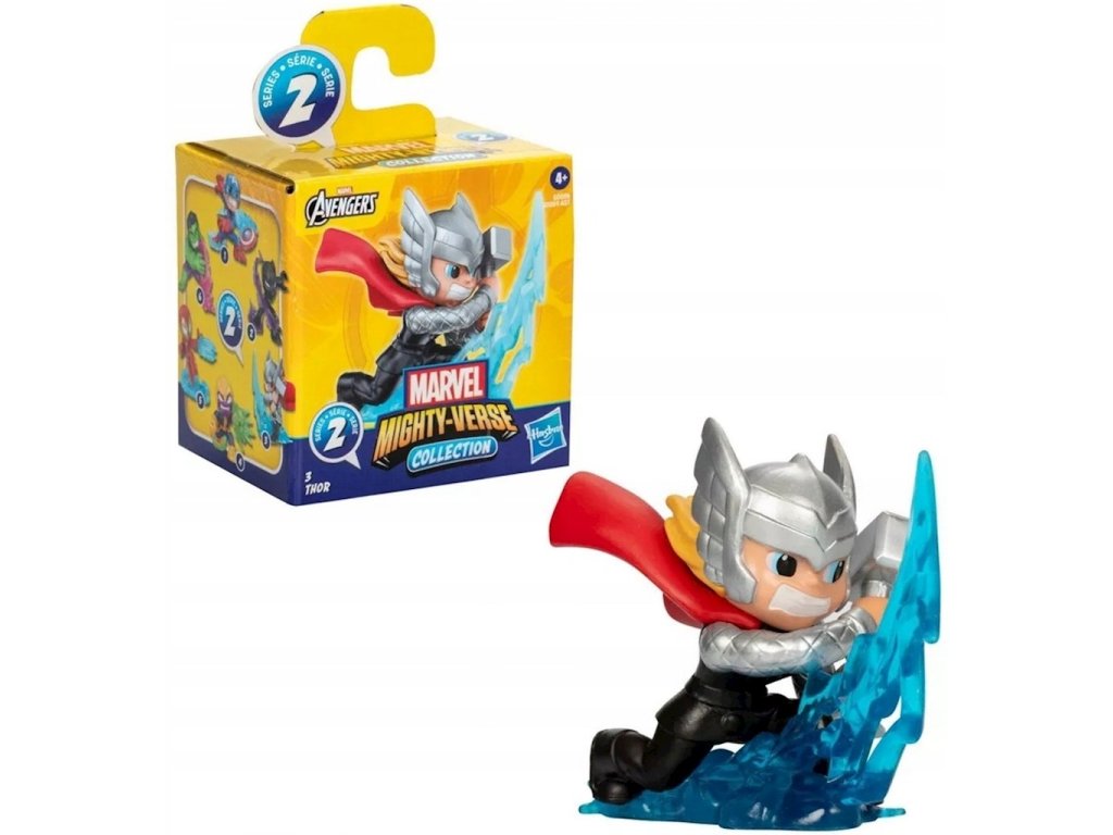 Hasbro Marvel Mighty-Verse Collection Thor Figure G0096Thor je jedním ze zakládajících členů Avengers. Není skutečně nesmrtelný. Spoléhá na to, že jí jablka z Idunnu, aby si prodloužil svůj tisíciletý život. Jako syn Odina a Gaea je nejsilnější z Asgardů. Jeho zbraní je kladivo Mjolnir, které mu umožňuje létat a vrhat blesky.