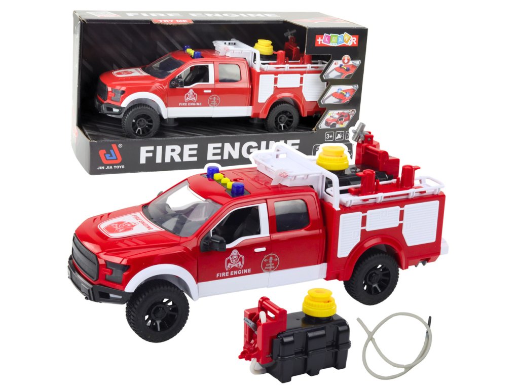 Auto je vyrobeno z kvalitního plastu a má mnoho funkčních prvků. Na střeše vozidla je odnímatelná nádrž s čerpadlem a flexibilní hadicí, která umožňuje hašení požárů rozstřikováním vody. Díky tomu se dítě může vžít do role skutečného hasiče a pomáhat "hasit" pomyslné požáry doma, na zahradě nebo na hřišti.