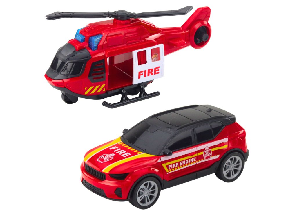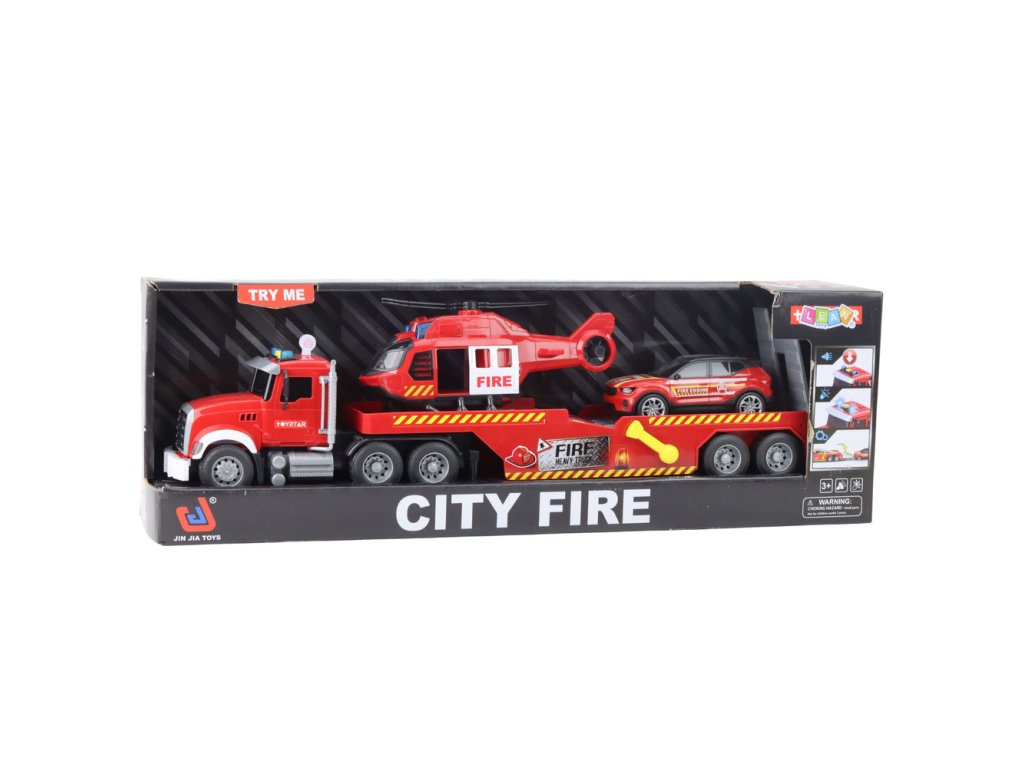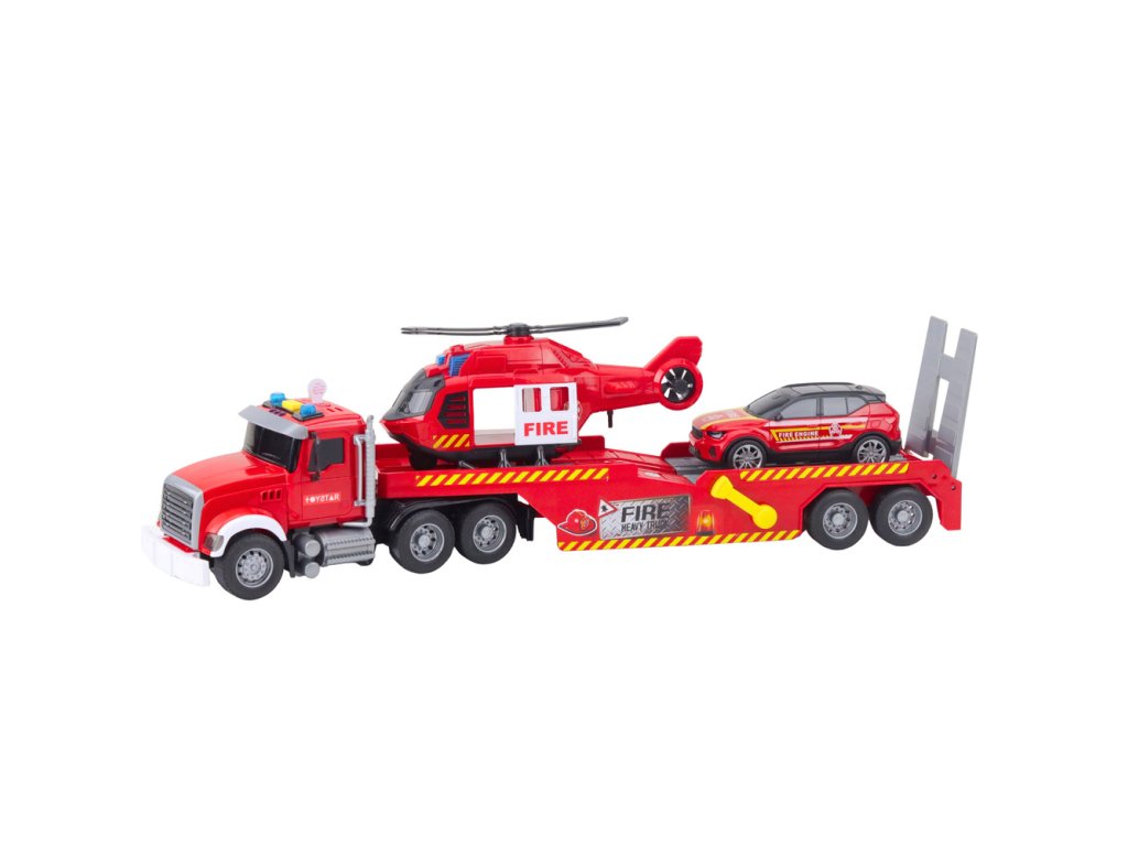 Hasičský odtahový vůz, vrtulník a auto – světla, zvuky, červené