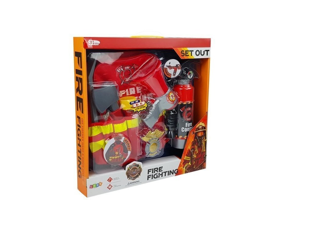 Hasičský batoh má žluté odlesky na červeném pozadí s nápisem naznačujícím oheň. Má malé kapsičky, kolem kterých si můžete dát šikovné vybavení. Hasicí přístroj funguje jako sprinkler - stačí do něj nalít vodu a uhasit požáry! Prostřednictvím megafonu můžete oznamovat důležité zprávy a osvětlovat černé uličky pomocí baterky, která je součástí sady. Malého hasiče dárek potěší a zábava nebere konce!