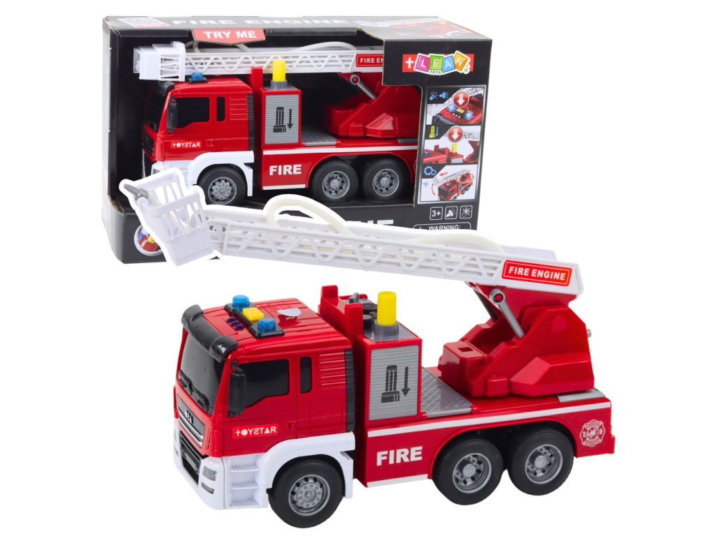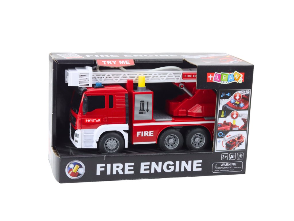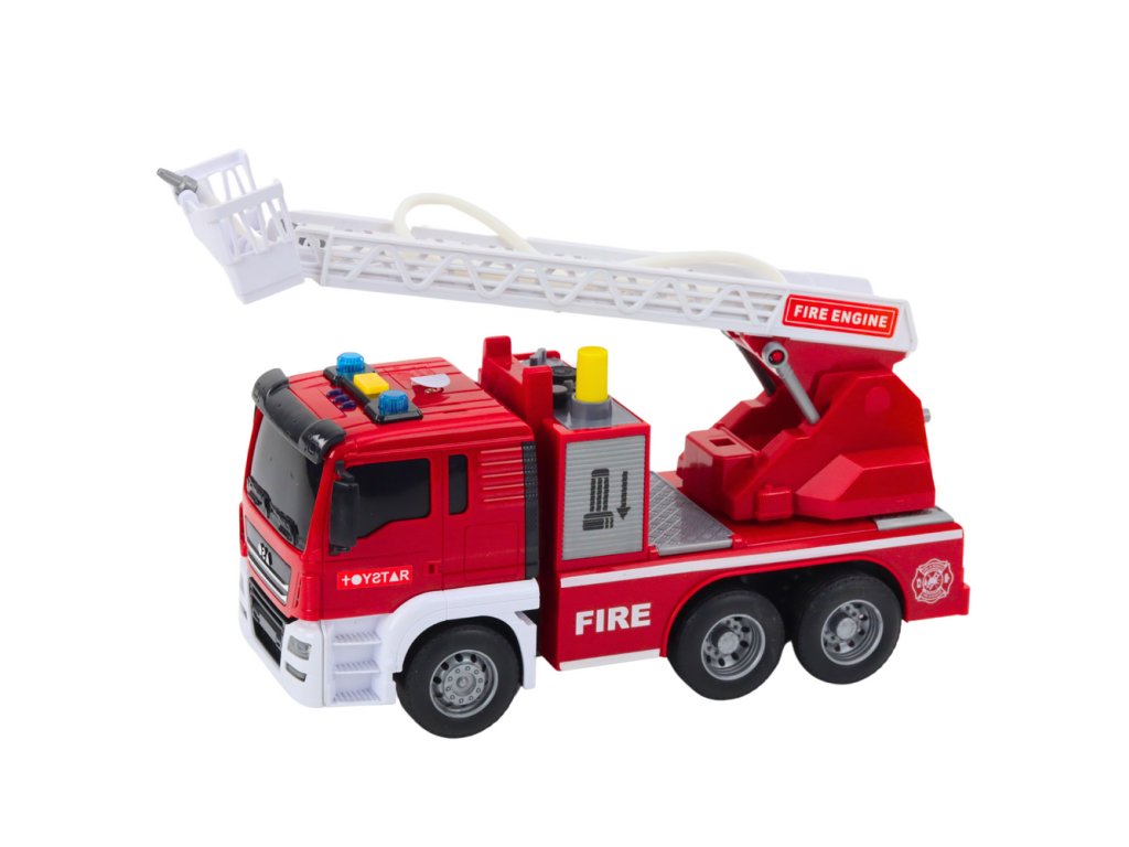 Žebřík je výsuvný, zvednutý a otočný o 360°, což poskytuje širokou škálu herních možností. Po naplnění nádrže vodou a stisknutí čerpadla vytéká voda z konce výložníku. Výsuvné podpěry a boční klapka na hadici jsou další detaily, díky kterým se dítě cítí jako skutečný hasič.