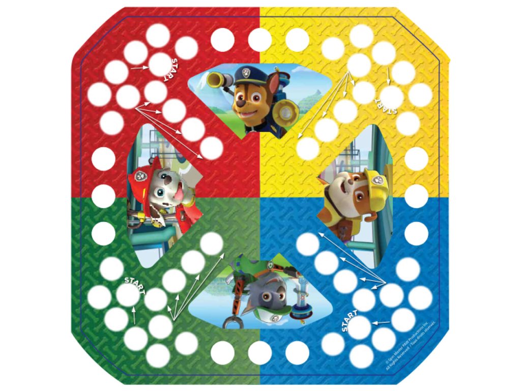 Desková hra se skládá z; barevné plastové desky o rozměrech 20 x 20 cm. Deska je rozdělena na čtyři zóny. Deska je zdobena grafikou s kreslenými postavičkami Psí hlídky a barvy zón jsou specifické pro jednotlivé psy - Rubble má žlutou barvu, Chase modrou, Marshall červenou a Rocky zelenou. Herní deska má plastové dráhy s prohlubněmi pro pěšáky a uprostřed desky je kostka pod průhlednou kopulí systému Pop Up. To znamená, že kostky se nehází, ale přitlačí se na kopuli, čímž kostky pod ní uzavřené vyskočí.