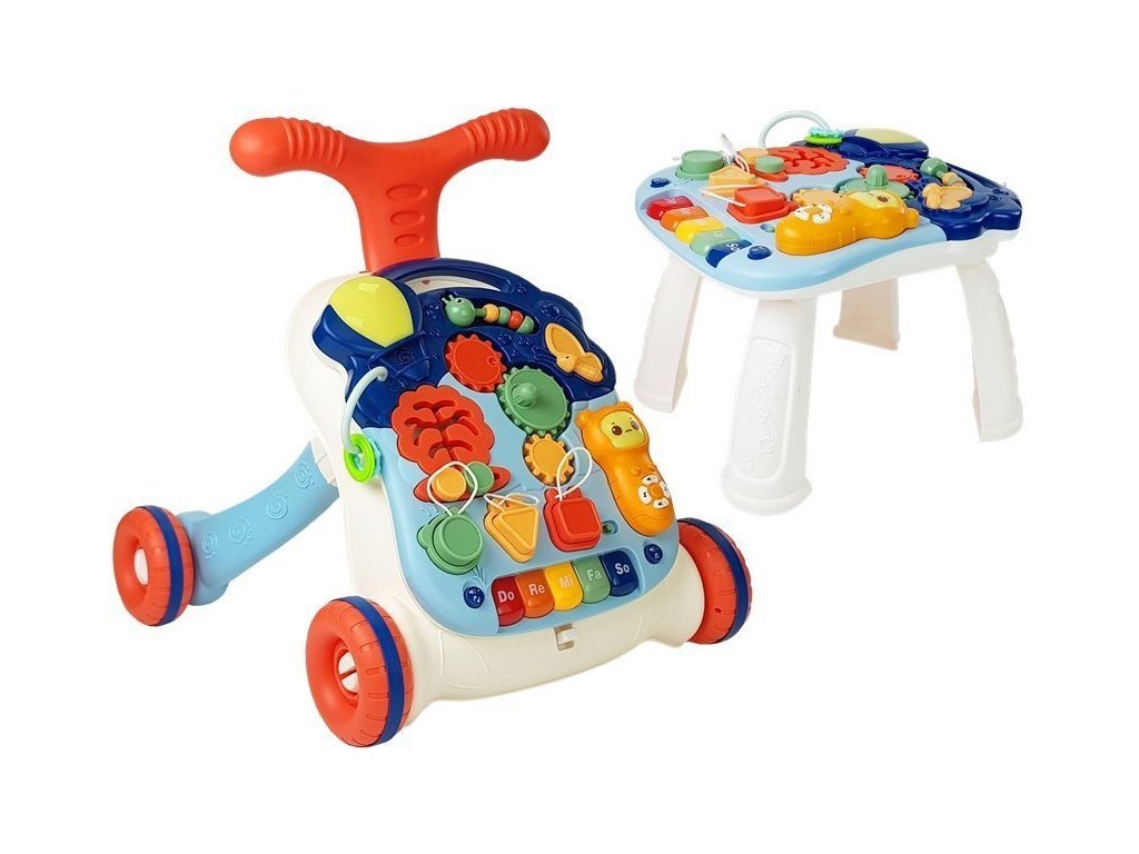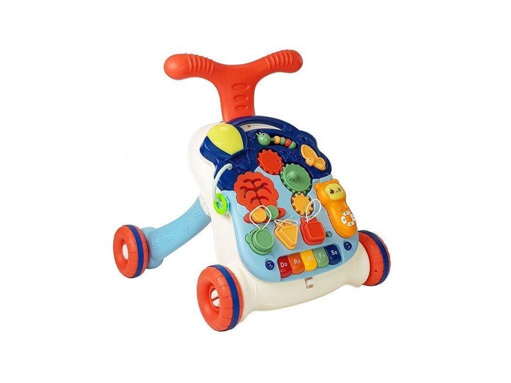 Prezentovaný kočárek v kombinaci s výukovým panelem učí děti nejen chodit, ale také podporuje jazykový, smyslový a motorický vývoj batolete a učí tvary, čísla a písmena.