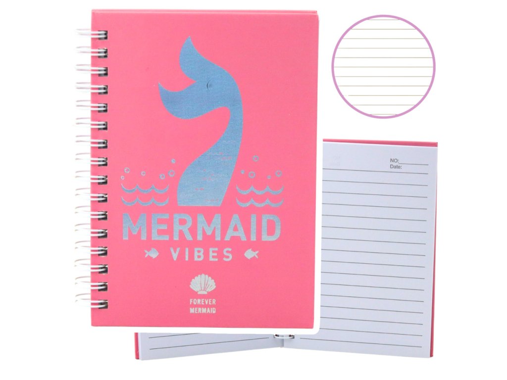 80STRÁNKOVÝ LINEKOVANÝ ZÁPISNÍK A6 - HOLOGRAFICKÝ RŮŽOVÝ S Ocasem mořské panny