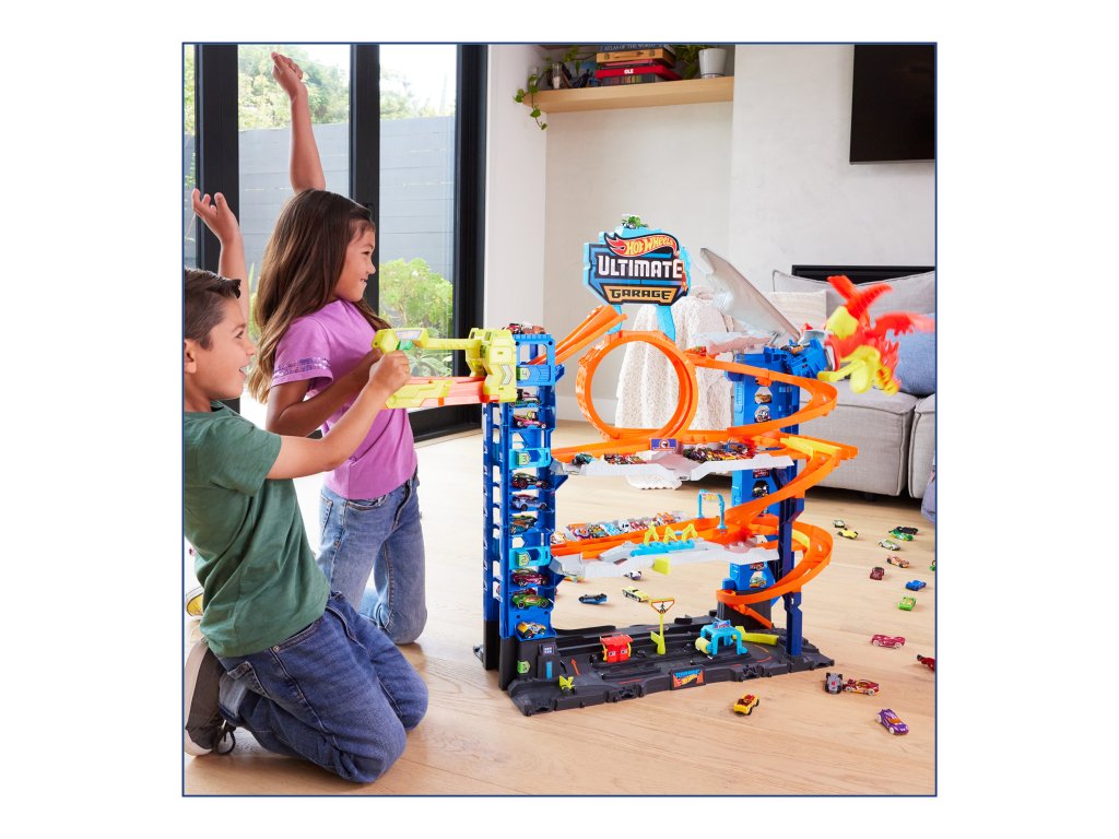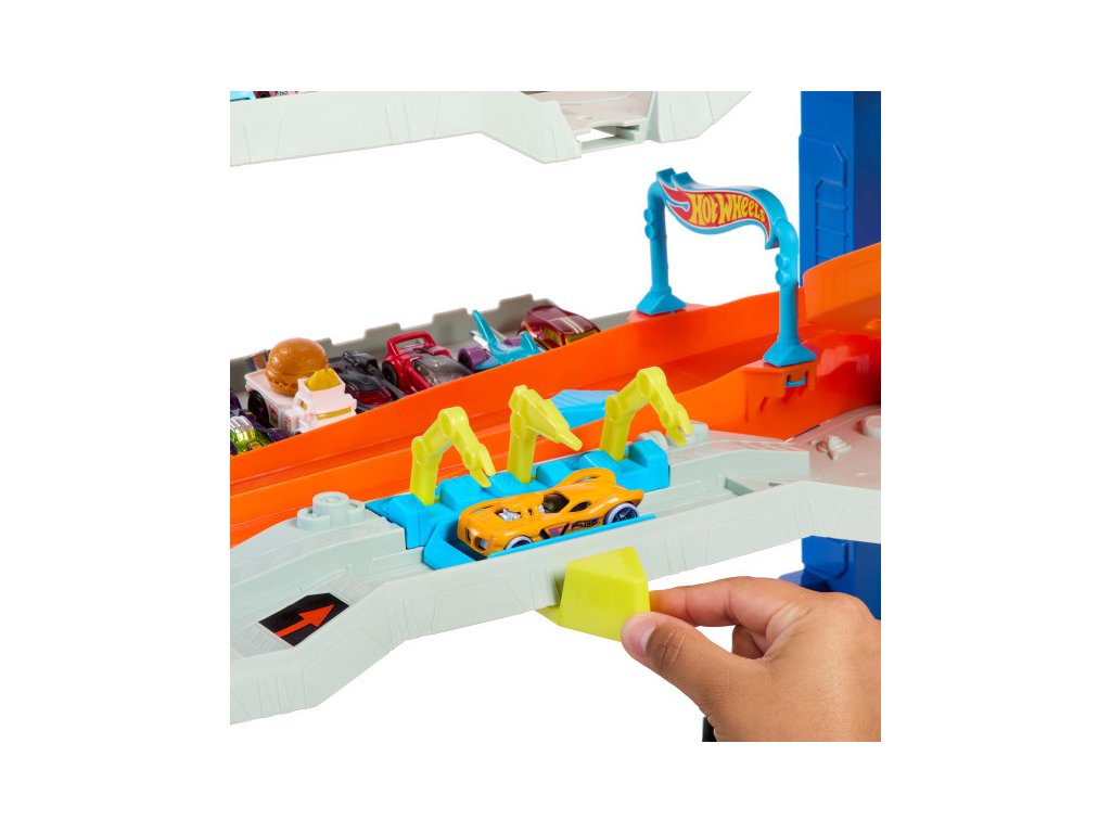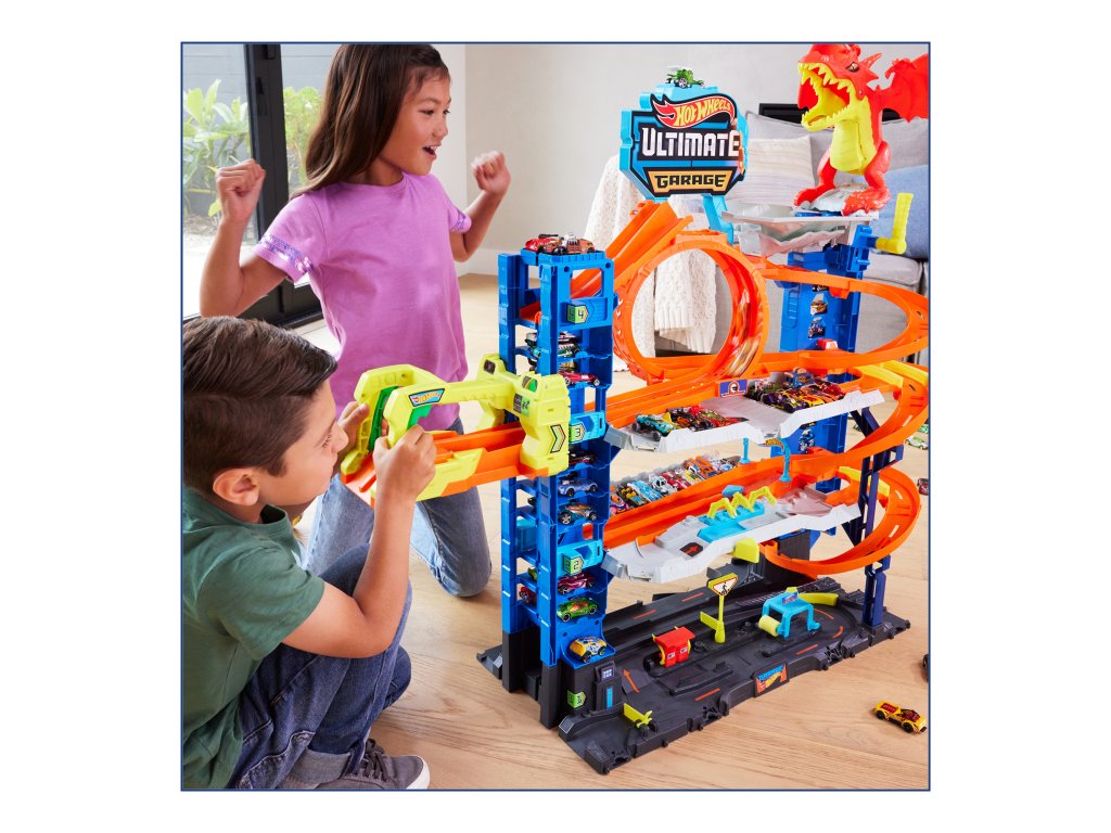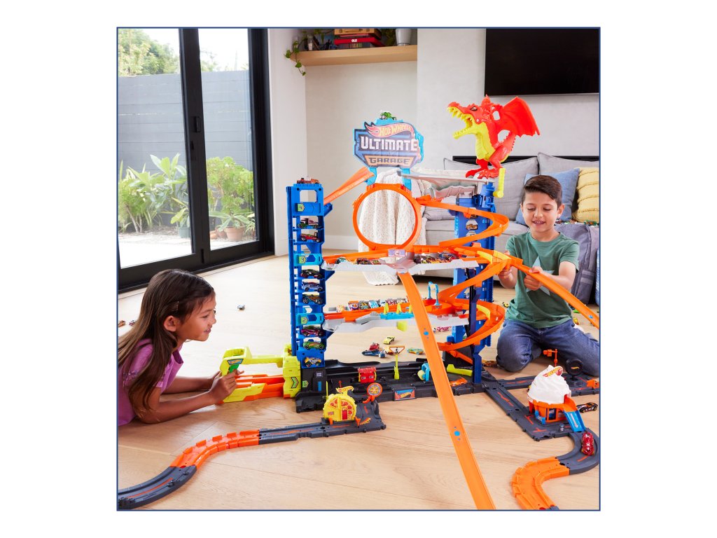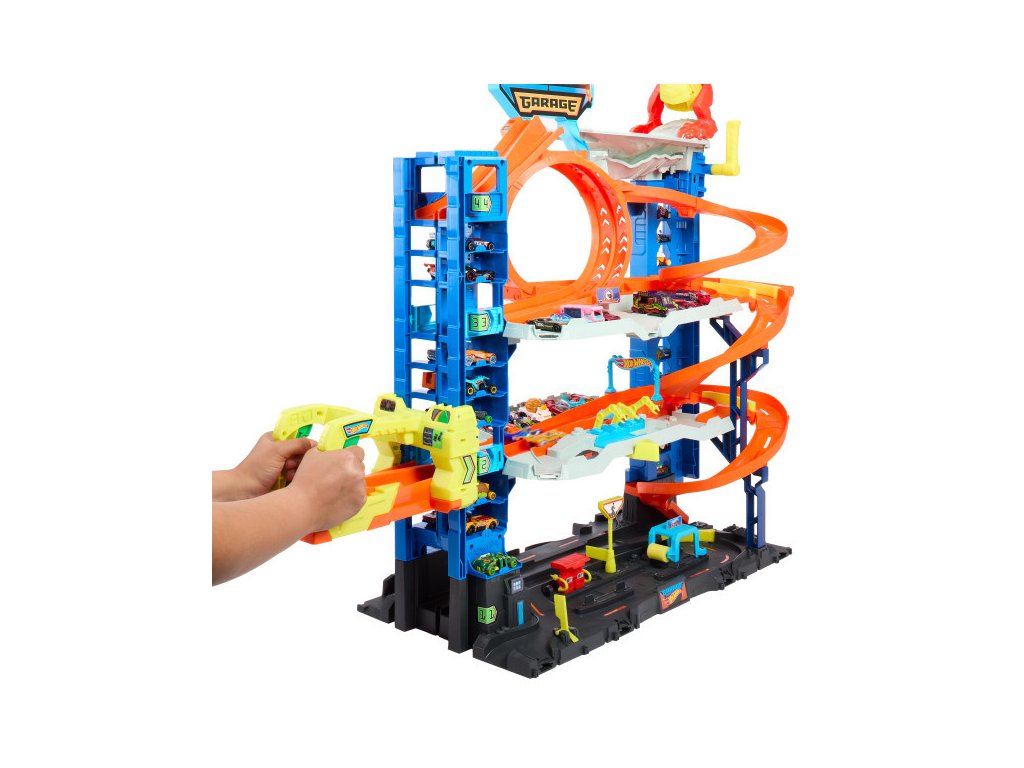 Posuňte zábavu na další úroveň se sadou Hot Wheels Ultimate Garage , která měří neuvěřitelných 90 cm na výšku. Tato dynamická dráha je plná akce, kde se děti musí postavit hladovému drakovi útočícímu na město. Autíčko Hot Wheels v měřítku 1:64 se může spustit ze skokanské plošiny a porazit draka tak, že ho srazí z dráhy. Odražený vůz spadne zpět na dráhu a spirálovitě se vrátí do bezpečí.
