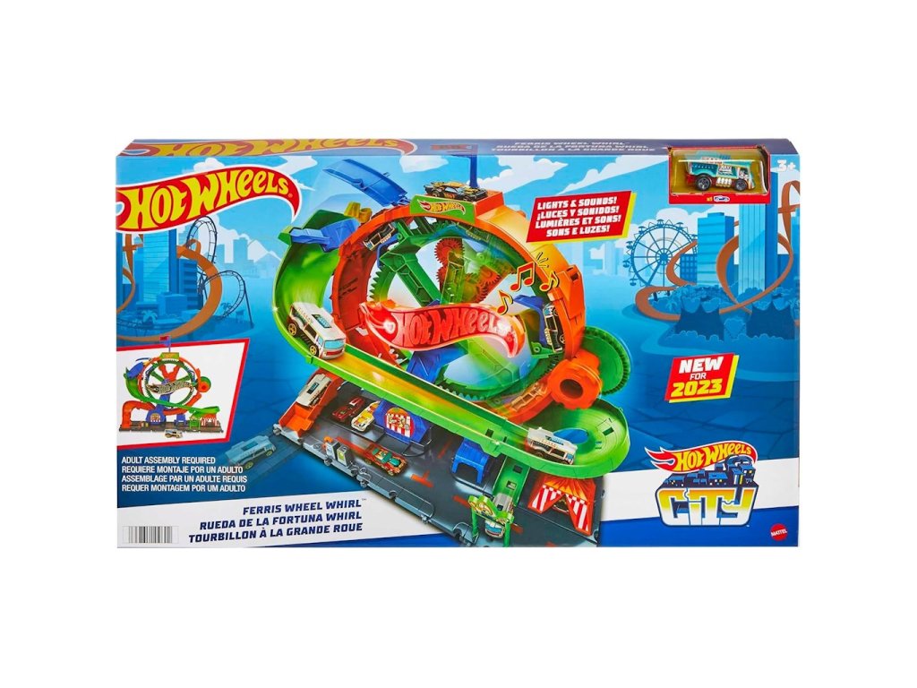 Hot Wheels Městská sada – Obří ruské kolo se světlem a zvukem HKX46 + 5-pack Let's Race JDR20
