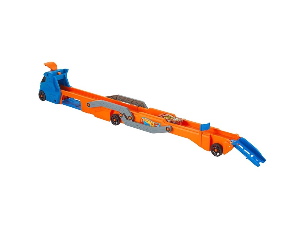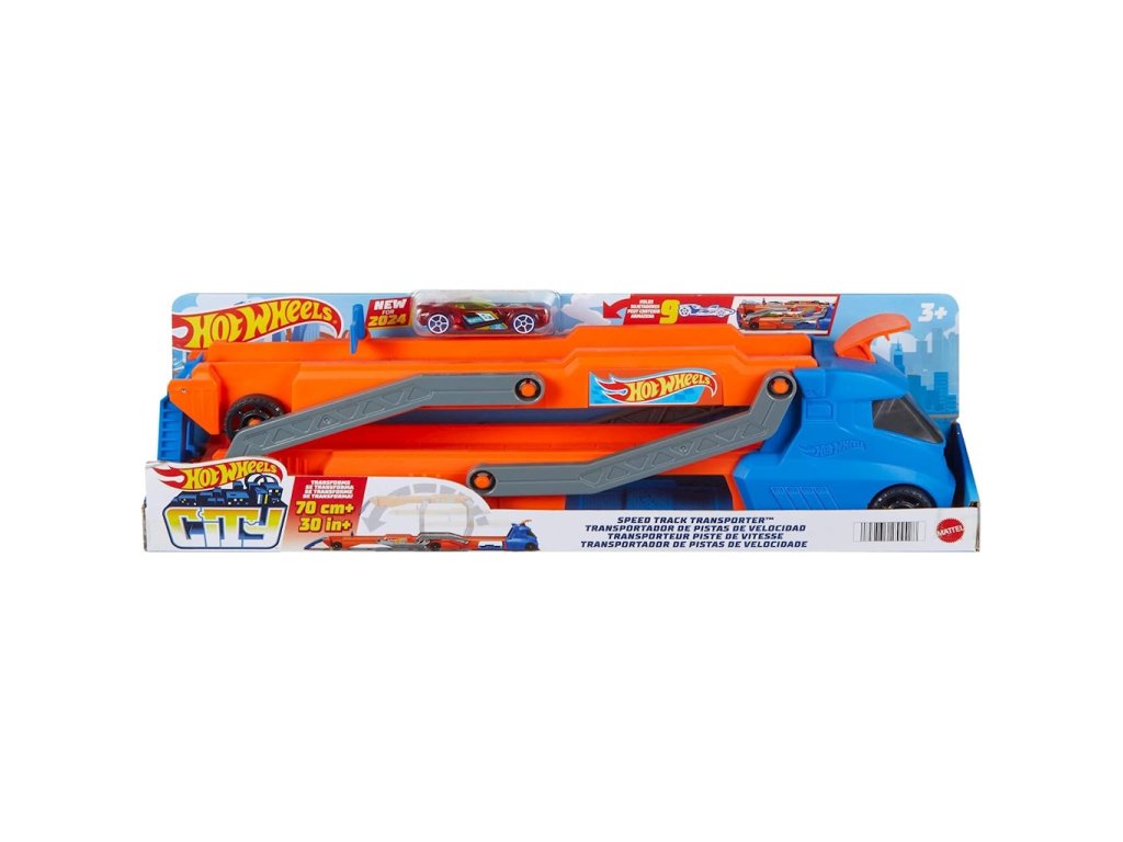 Hot Wheels City Transporter pro 9 aut HYT83Připravte se na neuvěřitelnou zábavu s Hot Wheels City Transporter! Tento jedinečný transportér nejen pojme až 9 autíček Hot Wheels v měřítku 1:64, ale také se promění ve vzrušující závodní dráhu dlouhou přes 76 cm! Díky vestavěnému odpalovacímu zařízení v kabině řidiče a možnosti připojení k jiným sadám mohou děti vytvářet vlastní rally dobrodružství a kaskadérské kousky. Sada obsahuje jedno autíčko Hot Wheels.