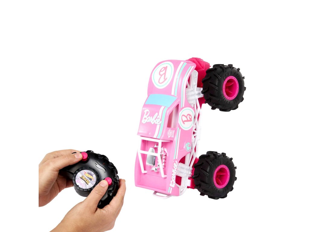 • Překonejte překážky a podmaňte si konkurenci Barbie® styl v dálkově ovládaném Hot Wheels® RC Monster Trucks vozidle Barbie,