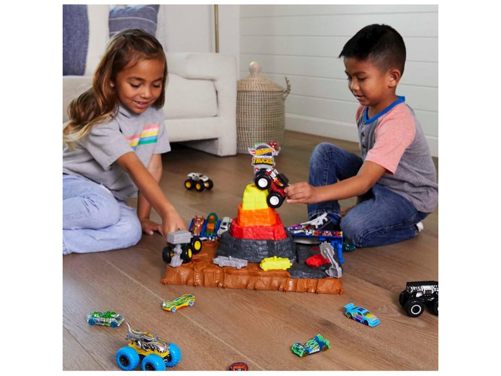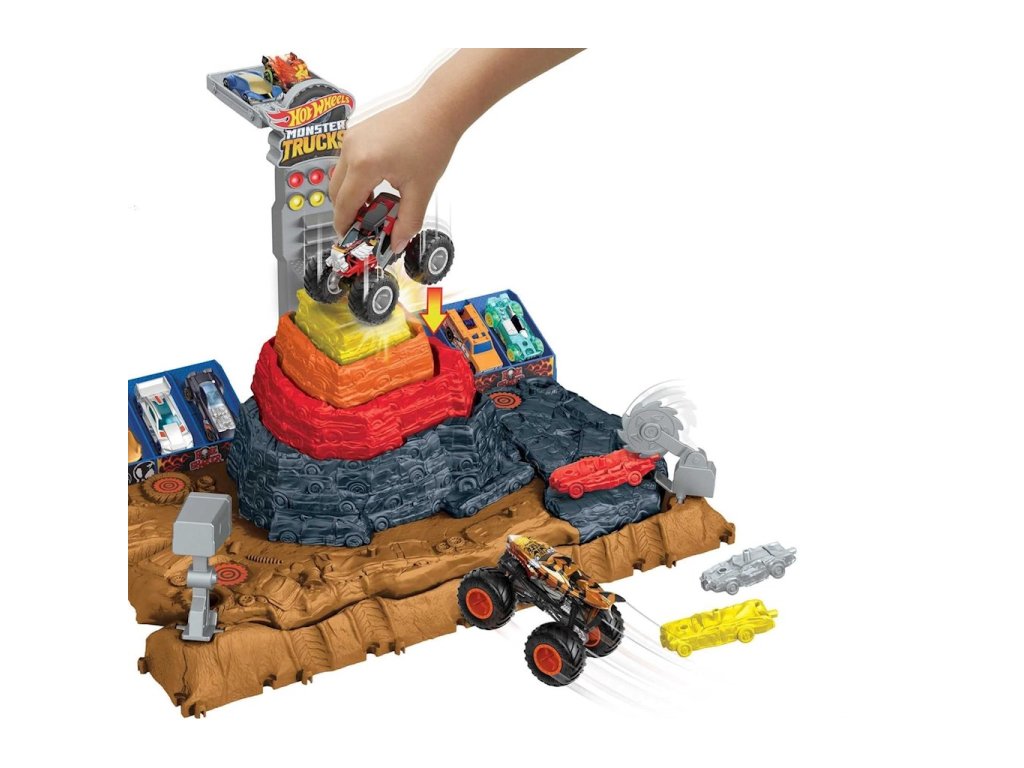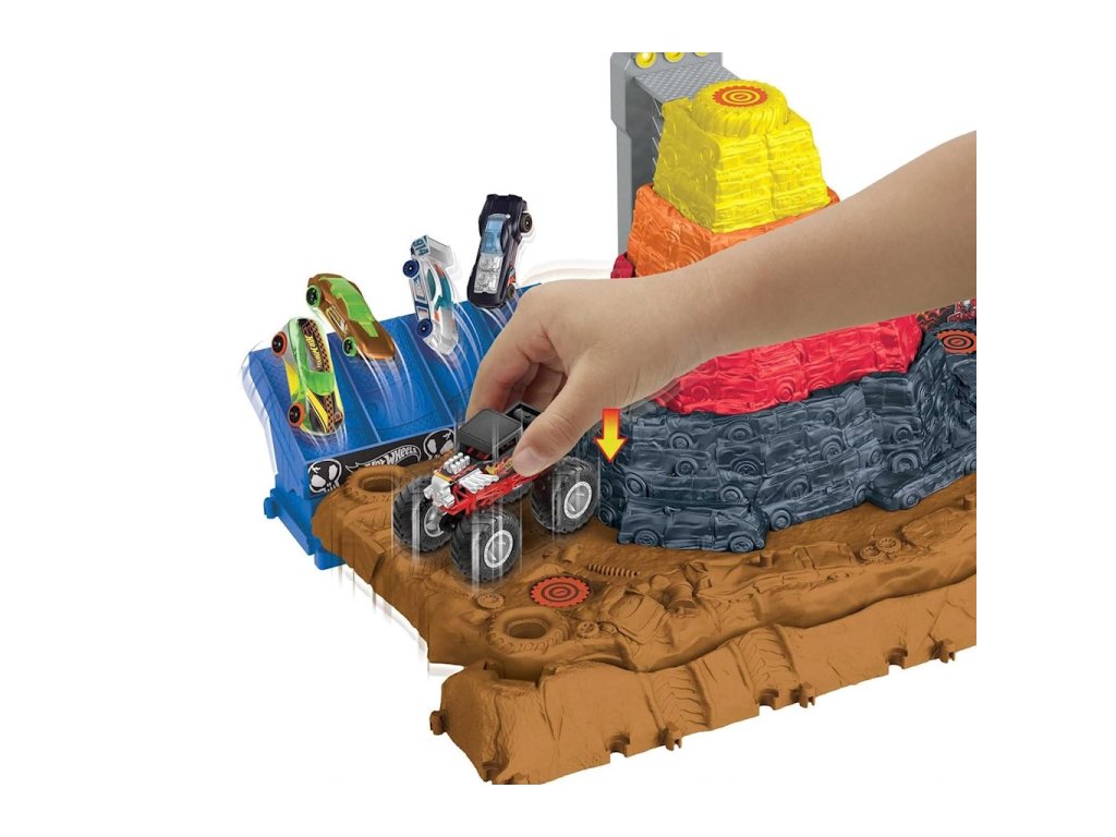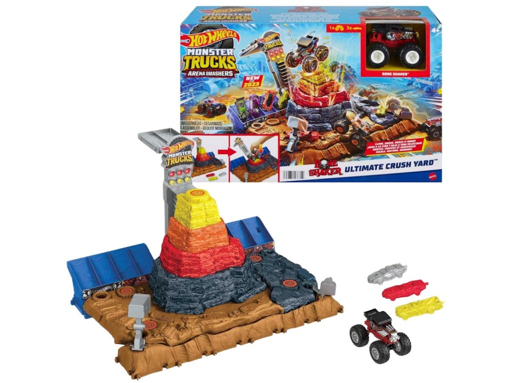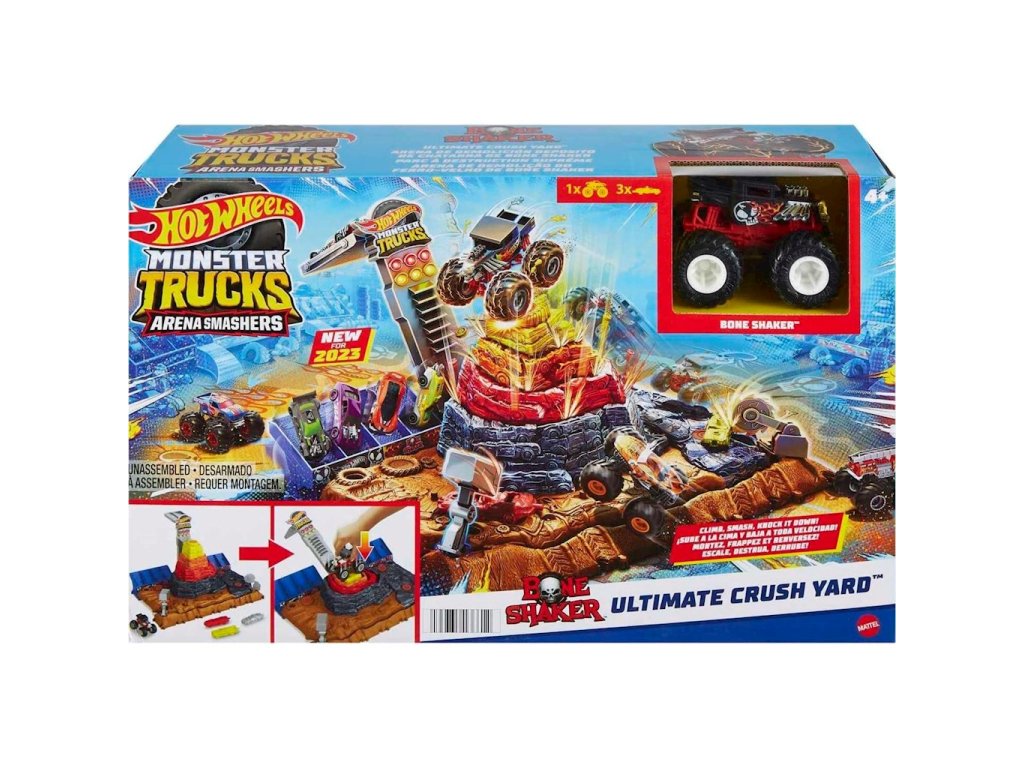 Hot Wheels Monster Trucks Arena Pyramid HNB96Děti mohou zažít dokonalý zážitek z rozbíjení a rozbíjení Monster Truck s Hot Wheels Monster Trucks Arena Smashers™. Uvolněte se zasažením pěti určených „smash“ bodů Destrukce ve stylu Bone Shaker. Vyjeďte s vozidlem Bone Shaker na vrchol věže „rozdrcených“ aut a rozdrťte ji, abyste se stali králem demolice.
