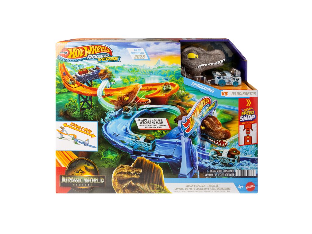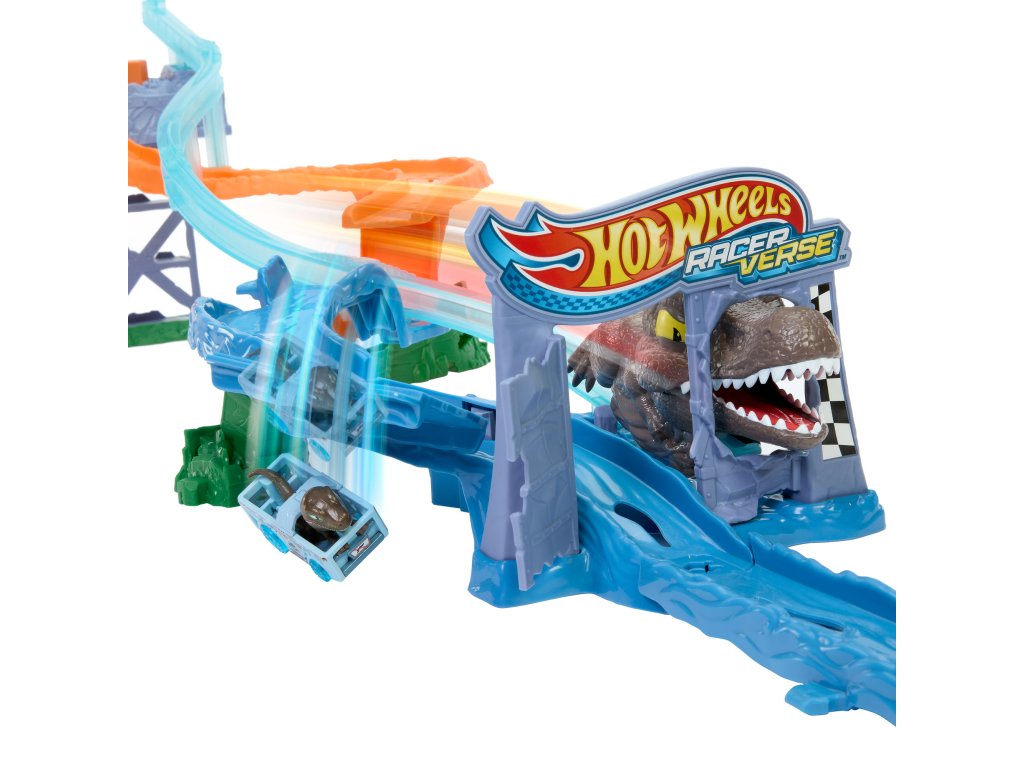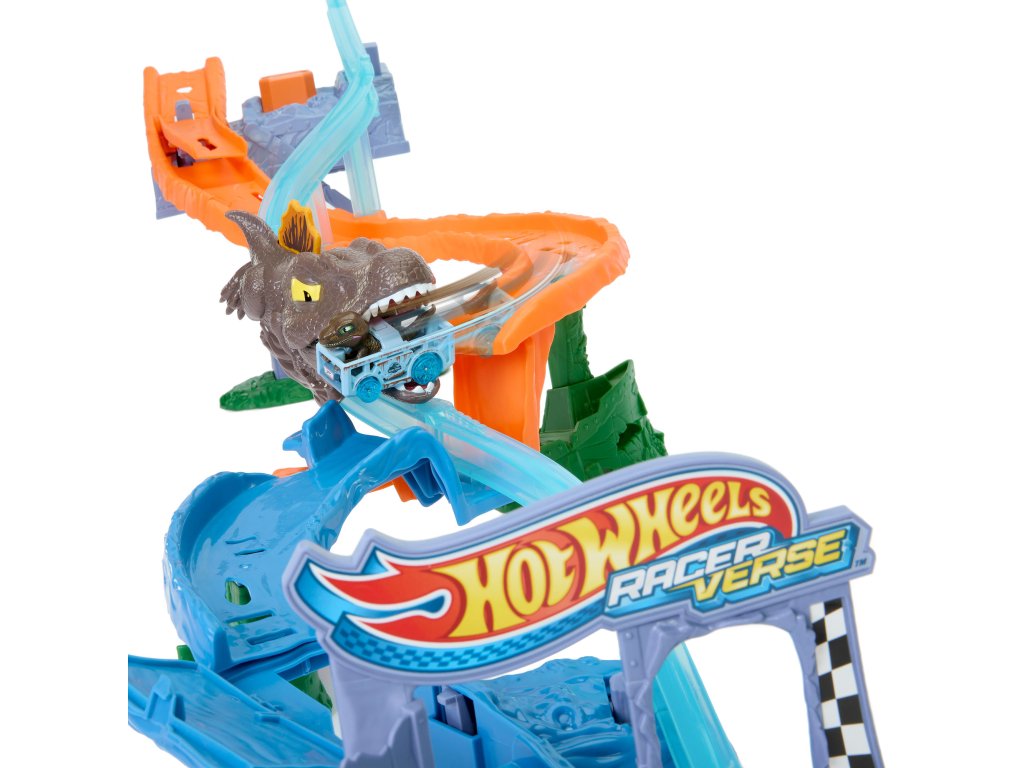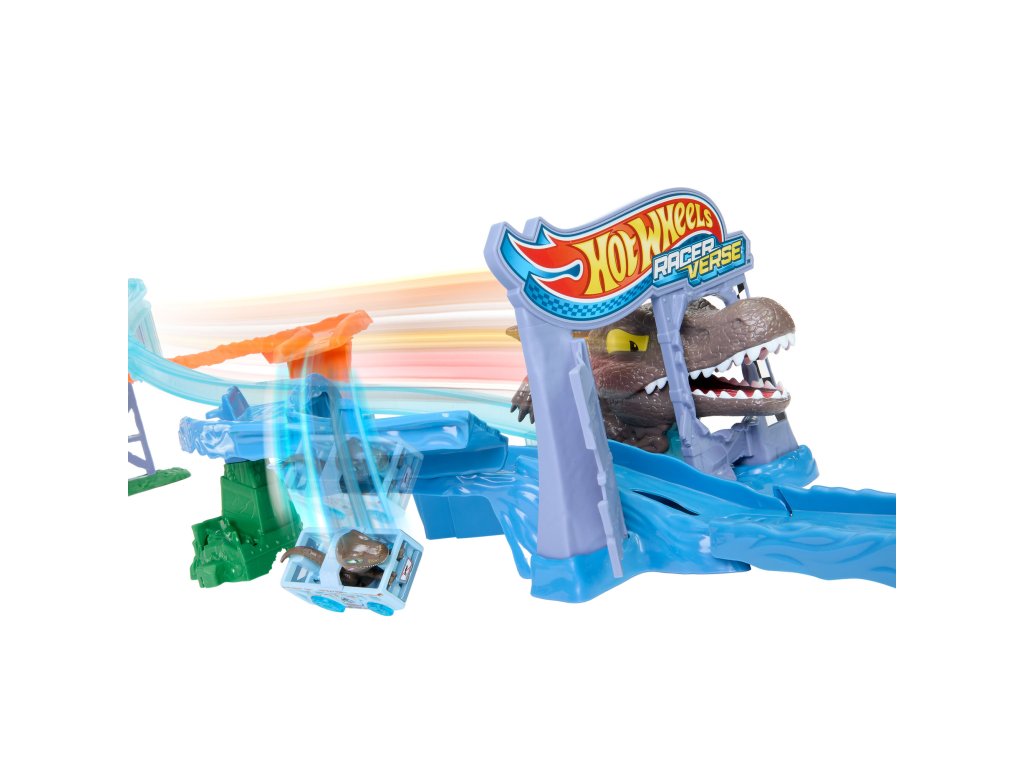 Hot Wheels Racerverse Jurassic World Crash & Splash Mořský Dinohon autodráha + vozidlo