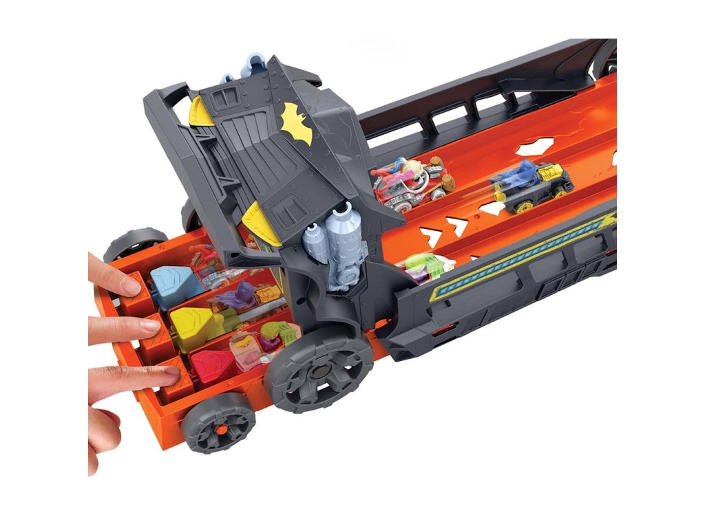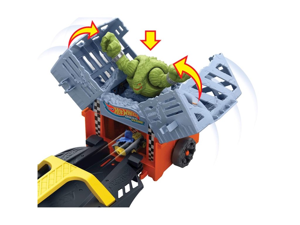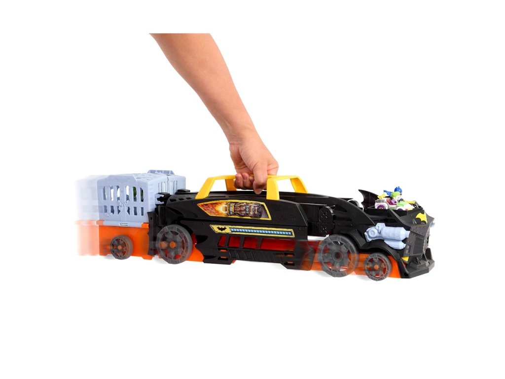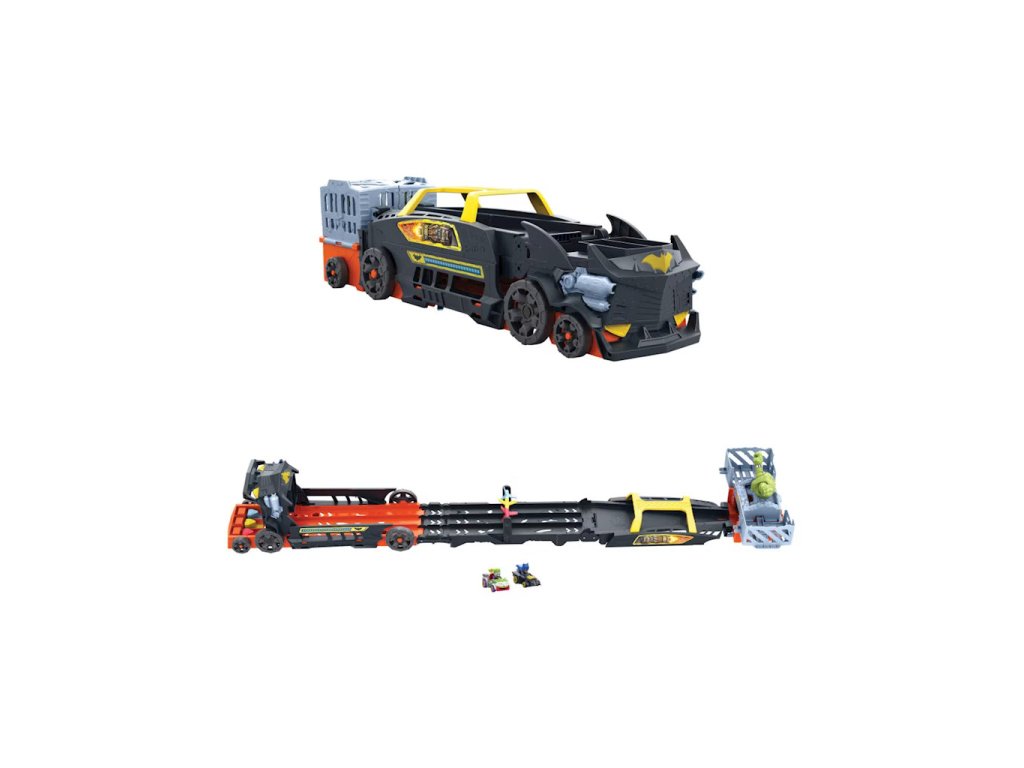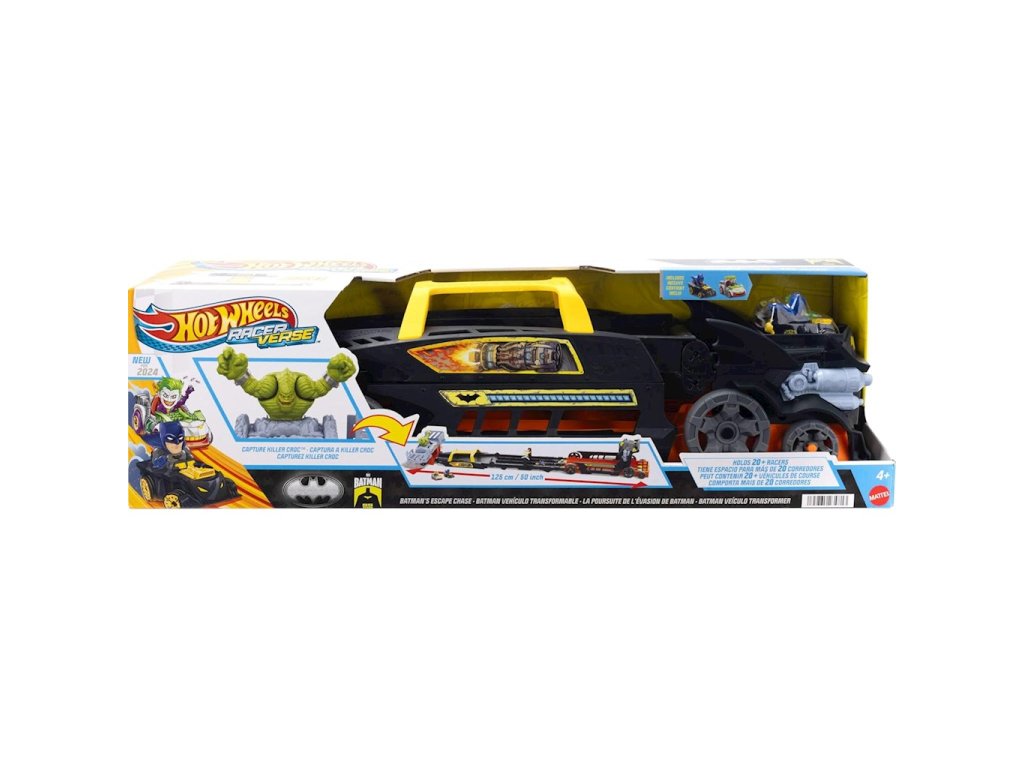 Hot Wheels RacerVerse Batman Transporter HXN21Vezměte si svou stavebnici Hot Wheels RacerVerse na silnici s tímto masivním náklaďákem s tématikou Batmana™, který se promění v tříproudou závodní dráhu! Závodníci soutěží v tom, kdo chytí Killer Croc, aniž by byli zastaveni nebo blokováni. První jezdec, který dorazí do cíle, chytí Killer Croc a zachrání den!