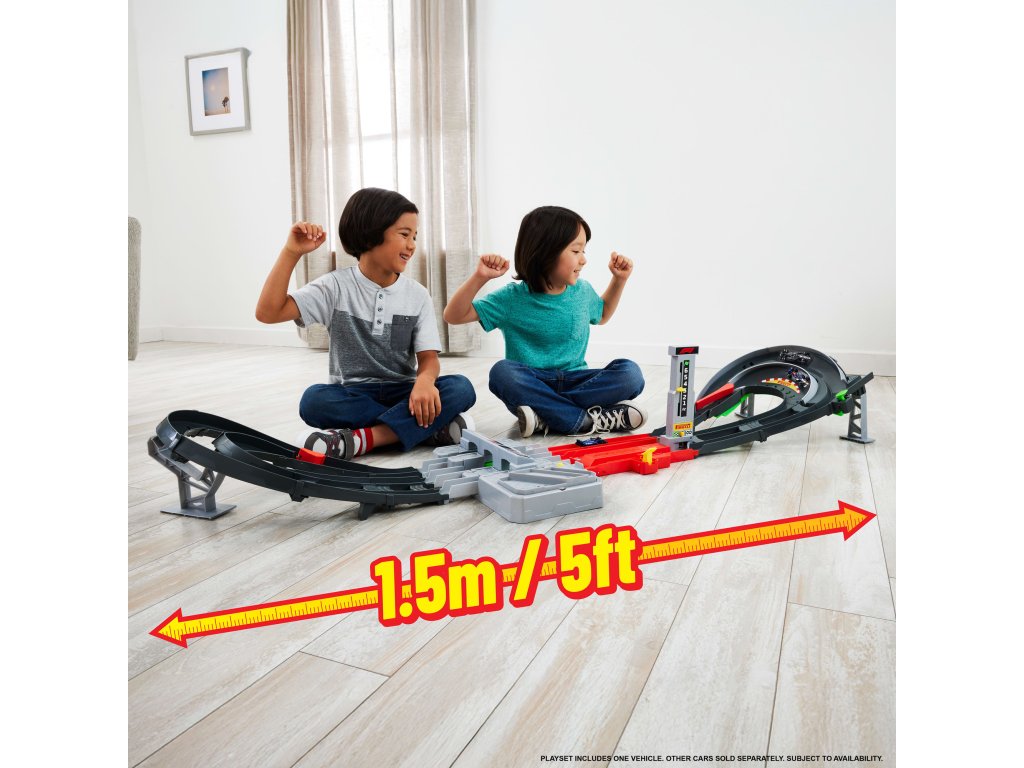 - Systém Speed Snap umožňuje snadnou a rychlou stavbu a přestavbu trati a její propojení s dalšími tratěmi Hot Wheels (prodávají se samostatně).