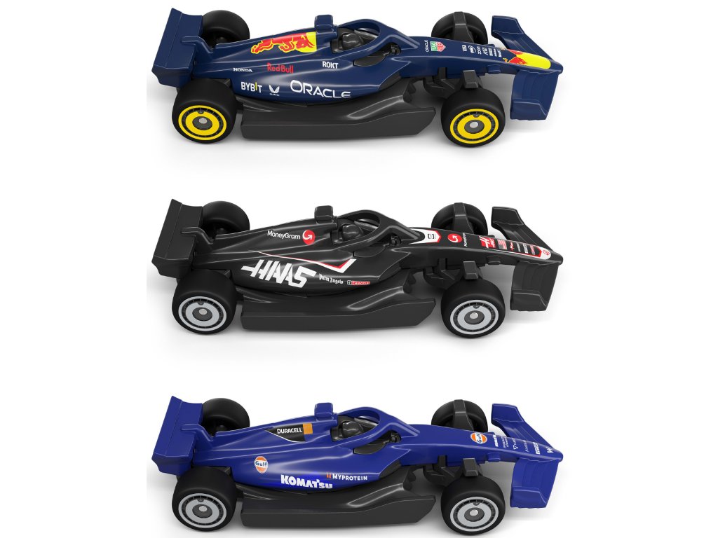 - Sada obsahuje závodní vozy inspirované skutečnými týmy F1: Oracle Red Bull Racing, MoneyGram Haas a Williams Racing .