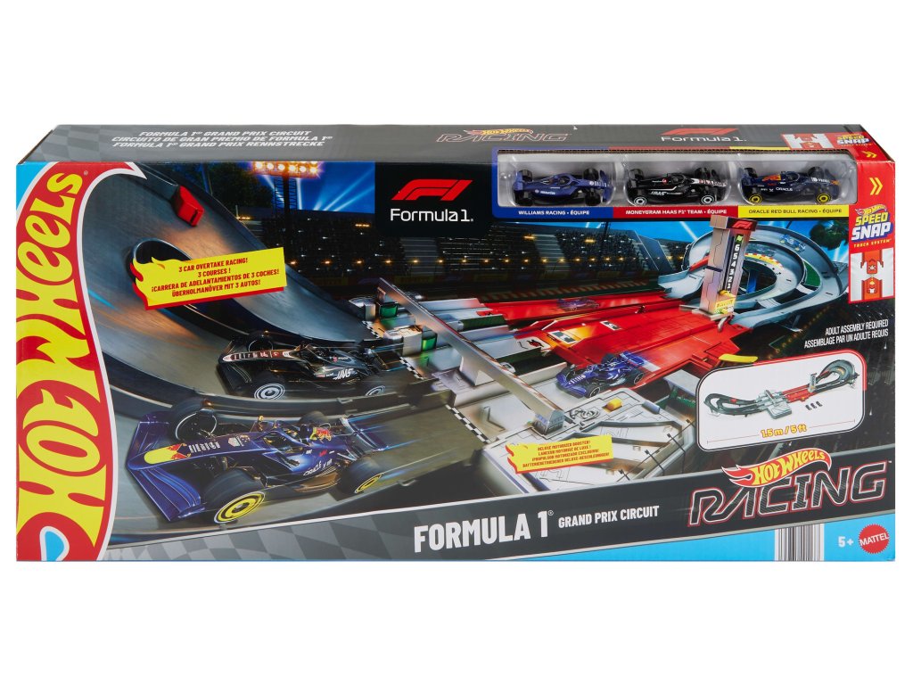 Sada Hot Wheels Racing Grand Prix F1 přináší vzrušení z tratí Formule 1 přímo do dětského pokoje. Děti mohou závodit ve třech kovových vozech F1, které jsou součástí sady, a zdolávat dynamické zatáčky, kopce a zpomalovací prahy, které napodobují skutečné závodní tratě.