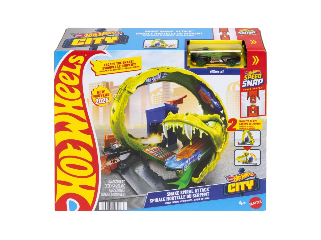 Sada Hot Wheels Speed Snap Snake Loop Spiral Attack Track + Vozidlo