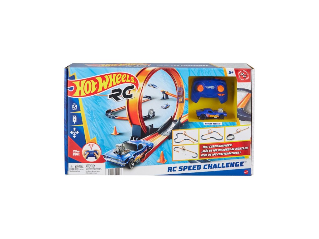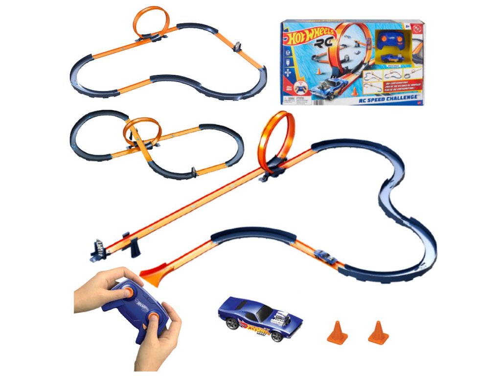 Sada RC dráhy Hot Wheels Speed Challenge + auto HXX45Sada RC dráhy Hot Wheels Speed Challenge obsahuje přes 30 dílků dráhy a dálkově ovládané auto Hot Wheels pro dokonalý závodní a kaskadérský zážitek. Navrhněte si epickou závodní dráhu se zatáčkami a smyčkami nebo si postavte kaskadérskou dráhu s neuvěřitelnou smyčkou. Vyzkoušejte si to s přiloženým autem na dálkové ovládání v měřítku 1:64, které může závodit a provádět kaskadérské kousky na drahách Hot Wheels i mimo ně.