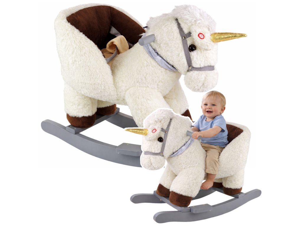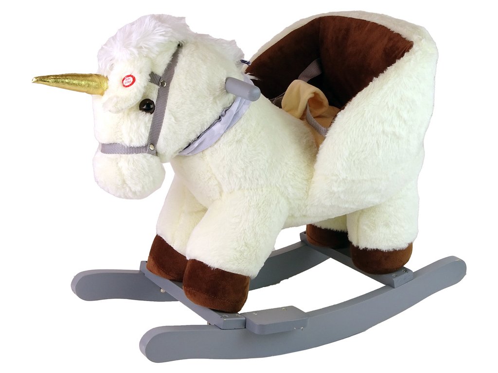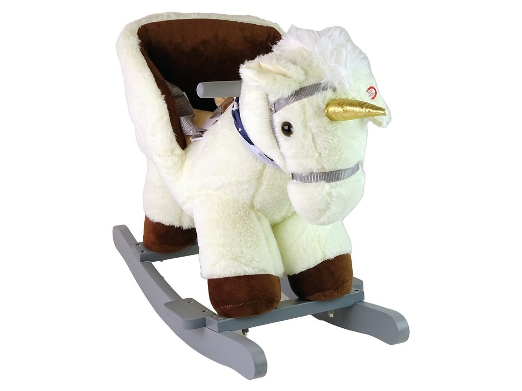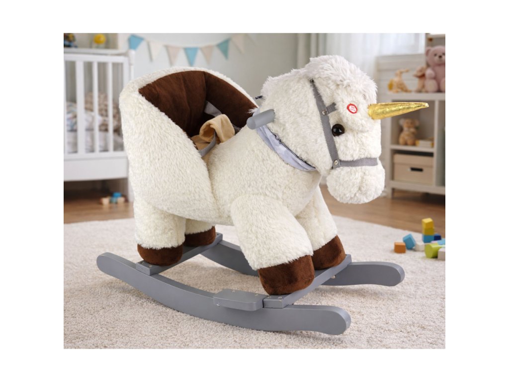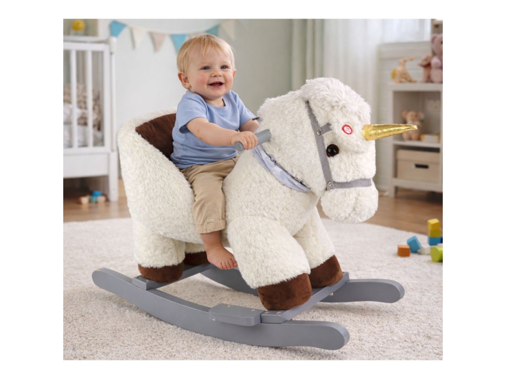 Vítejte ve světě půvabu a zábavy s naším malým houpacím koníkem, který dětem vykouzlí úsměv na tváři! Tento rozkošný jednorožec krémové barvy je dokonalým společníkem pro dětská dobrodružství. Napájen bateriemi (3 x R6 AA - nejsou součástí dodávky) začne hrát radostnou melodii stisknutím ucha, čímž do zábavy přidá kouzlo.