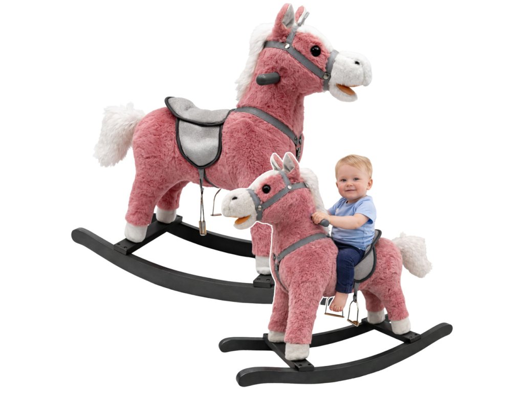 Růžový houpací kůň s působivými rozměry 74 cm x 22 cm x 48 cm je snem všech milovníků zvířat a dobrodružství! Jeho povrch je pokrytý jemným, měkkým materiálem, který poskytuje příjemný zážitek na dotek.
