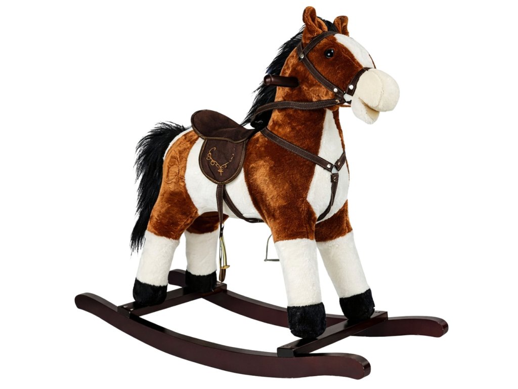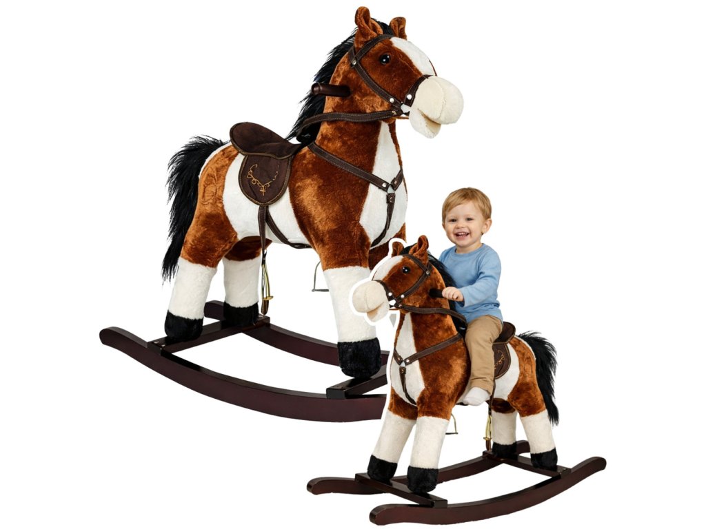 Jakmile se vaše dítě posadí na měkkého plyšového tmavě hnědého koně, bude okamžitě ponořeno do kouzelného, vzdáleného světa divokého západu. Houpací kůň byl pečlivě vyroben z materiálu příjemného na dotek, který zajišťuje pohodlí i při dlouhé jízdě. Jeho hlavu zdobí dlouhé, růžové kadeře.