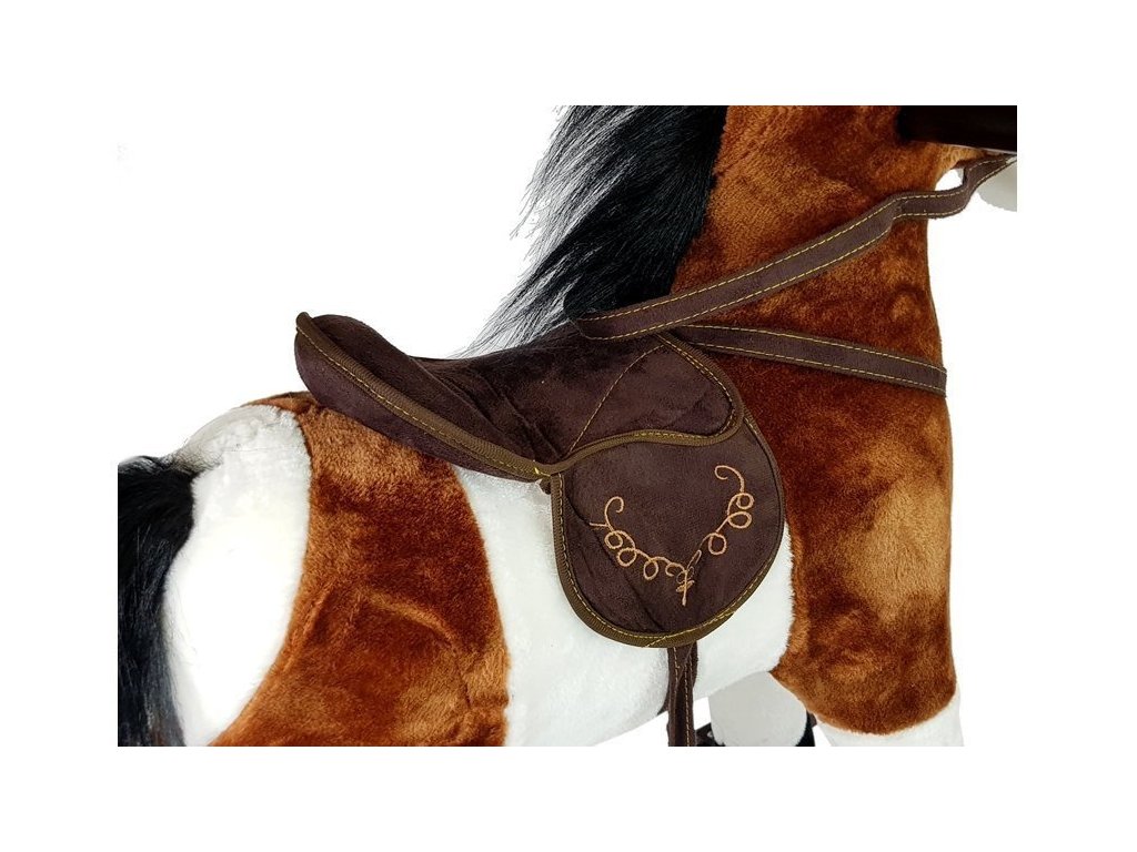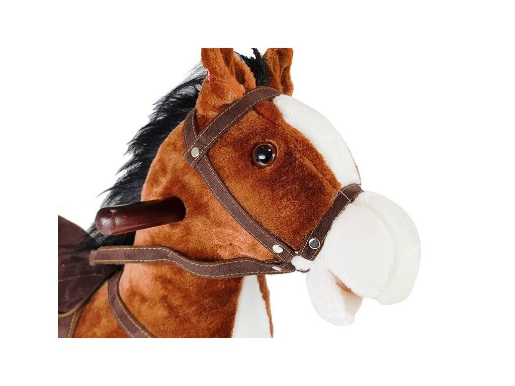 U hlavy koně jsou dřevěná madla, která zajišťují pevné uchopení a bezpečnou hru. Sedlo je vybaveno pohodlnými třmeny.
