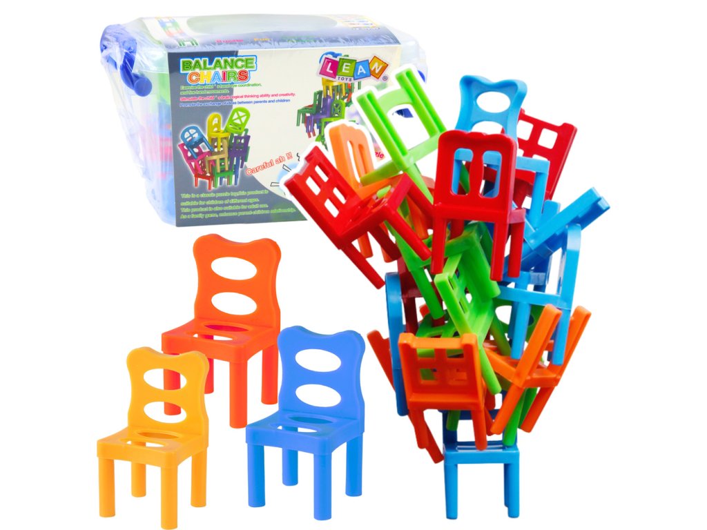 Balanční židle je vzrušující dovednostní hra pro celou rodinu, která poskytuje spoustu smíchu a pozitivní soutěže. Úkolem hráčů je postavit nejvyšší věž z barevných židlí - prvky jsou umístěny jeden na druhém a každý další pohyb vyžaduje soustředění, přesnost a... trochu odvahy! Prohrává ten, kdo způsobí kolaps konstrukce. Zdánlivě jednoduchá hra se rychle promění v napínavou výzvu, která je návyková bez ohledu na věk.
