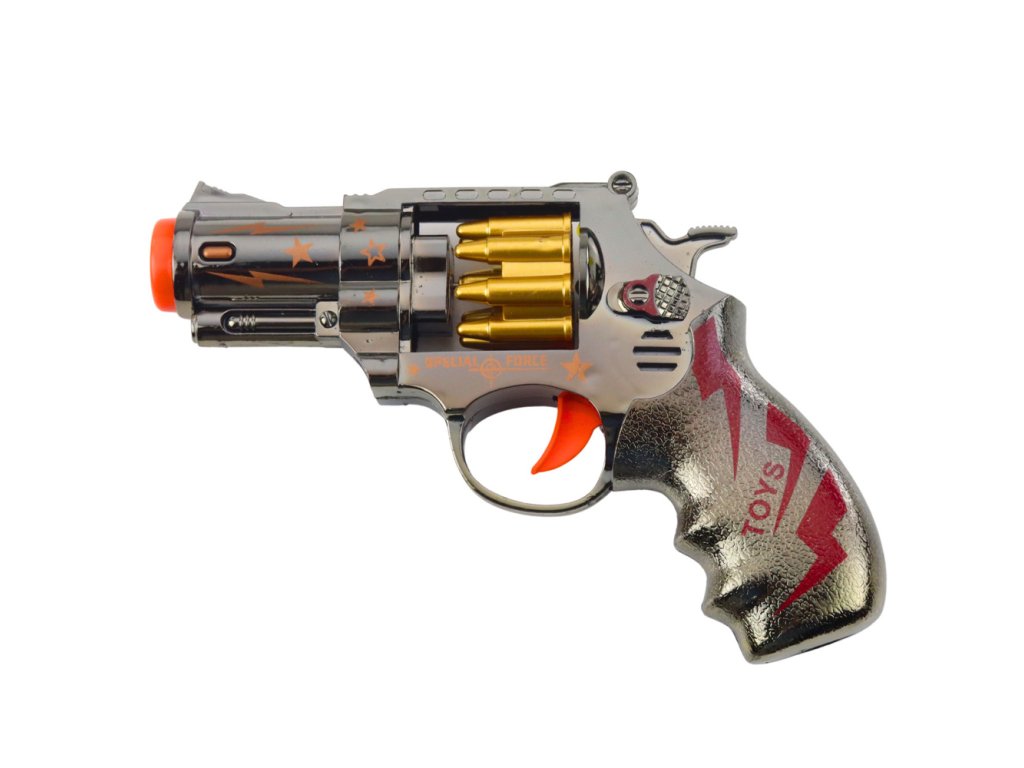 - Hračkový revolver s efekty