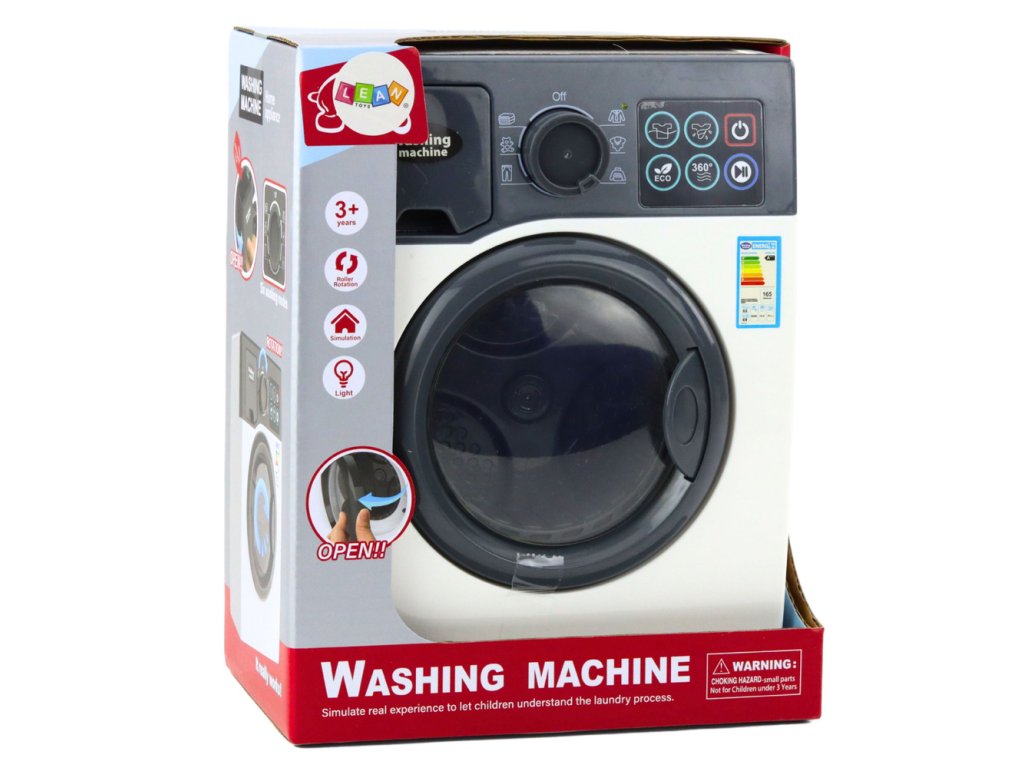Pračka na hračky je ideální pro děti, které milují napodobování každodenních činností dospělých. Tato interaktivní hračka dokonale reprodukuje vzhled a funkce skutečného domácího spotřebiče. Vybavený dotykovým ovládacím panelem, knoflíkem programátoru, zvukovými a světelnými efekty a otevíracím bubnem s průhledným okénkem poskytuje realistický zážitek ze hry.
