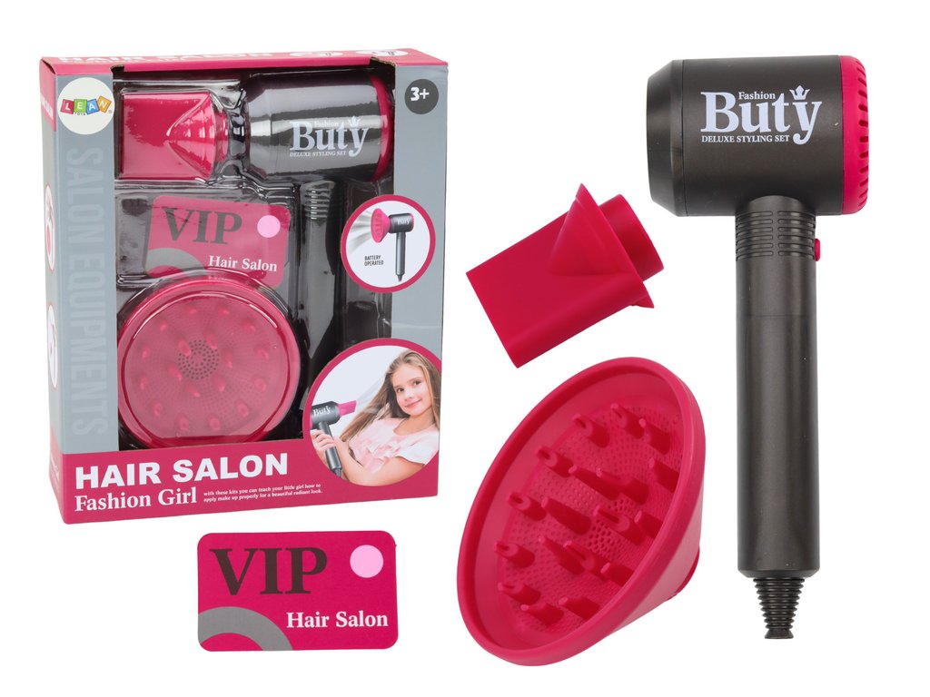 Sada s vysoušečem obsahuje dva sušicí hroty: podélný, který je ideální pro narovnání vlasů, a difuzér, který pomáhá při získávání přirozených vln nebo kudrlin. Díky této pomůcce mohou děti experimentovat s různými styly vlasů a vytvořit si svůj vlastní jedinečný účes.