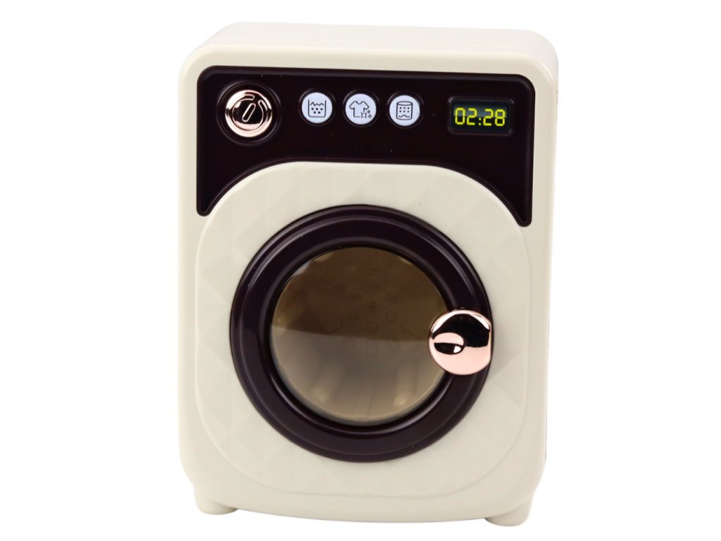 Hračková pračka má rotační buben, který věrně simuluje proces praní. Stačí otevřít dvířka, obléct si miniaturní oblečení, otočit knoflíkem a spustit zařízení, aby batole mohlo vesele hrát každodenní aktivity dospělých.