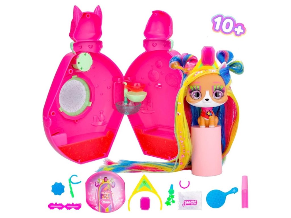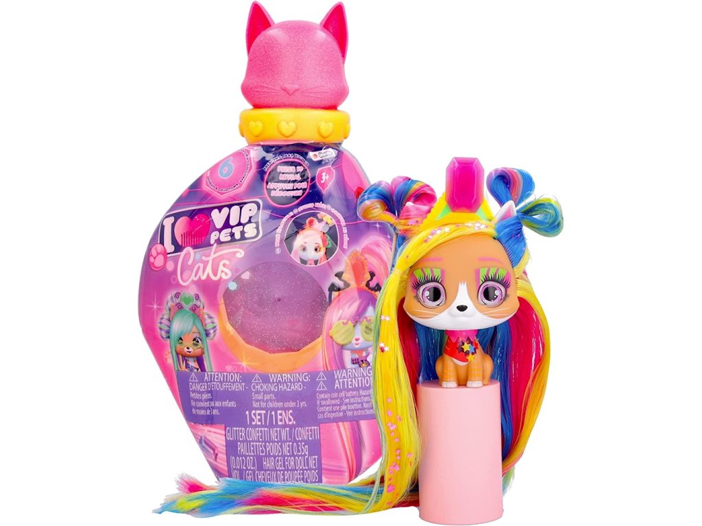 IMC Toys I Love Vip Pets Cats Figurka Kočka s dlouhými vlasy pro styling Melisa 714519VIP Pets Cats je zcela nová kolekce koček! V sérii je k objevování 6 koček. Každá figurka ze série se vyznačuje pečlivým zpracováním a precizně propracovanými detaily. Kočky mají nádherné dlouhé vlasy v bláznivých barvách. Barvy používané k barvení vlasů jsou netoxické, takže nehrozí alergie. Otevřete balíček a poznejte svého mazlíčka a objevte 10 překvapení. Každá z koček má jinou sadu doplňků a doplňků pro úpravu vlasů. Kromě toho je každá sada dodávána s mini průvodcem, který vás krok za krokem provede procesem vytvoření úžasného účesu.