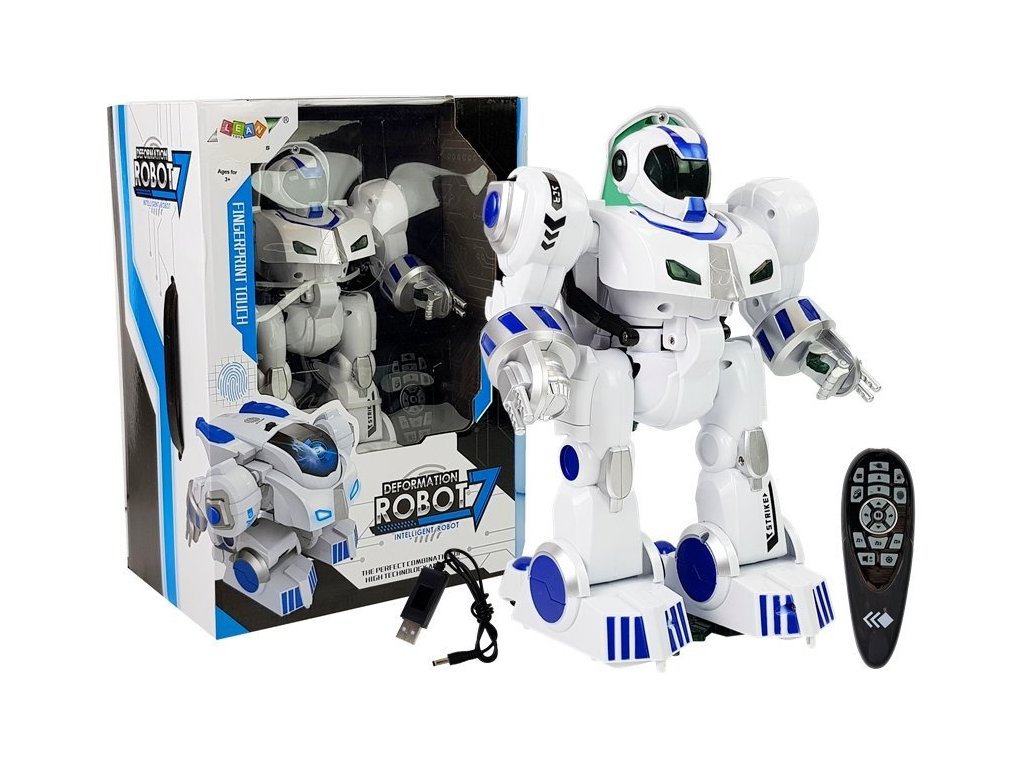 Hračka se ovládá dálkovým ovladačem, který pohodlně padne do ruky. Můžete s ním dávat hračce povely, pohybovat ji dopředu, dozadu a do stran. Navíc má tlačítko pro otisk prstu, které způsobí deformaci robota. Tři tlačítka s hudbou ho roztančí. Mnoho funkcí a spousta zábavy!