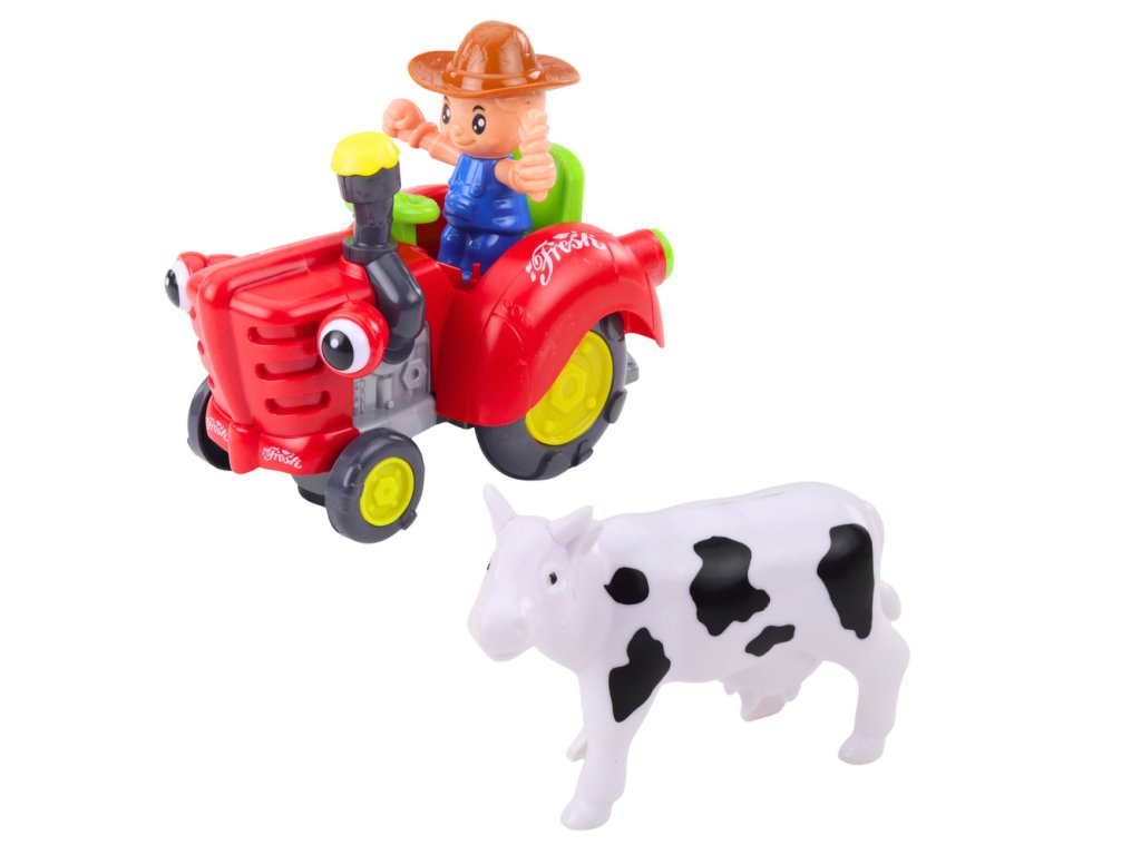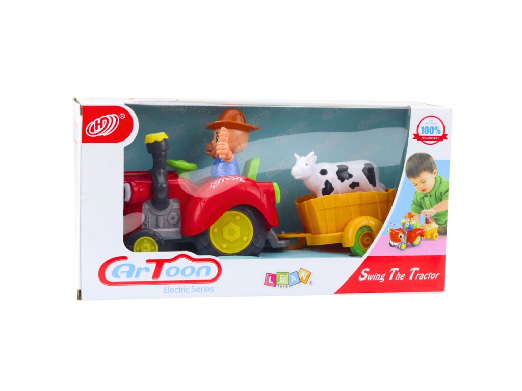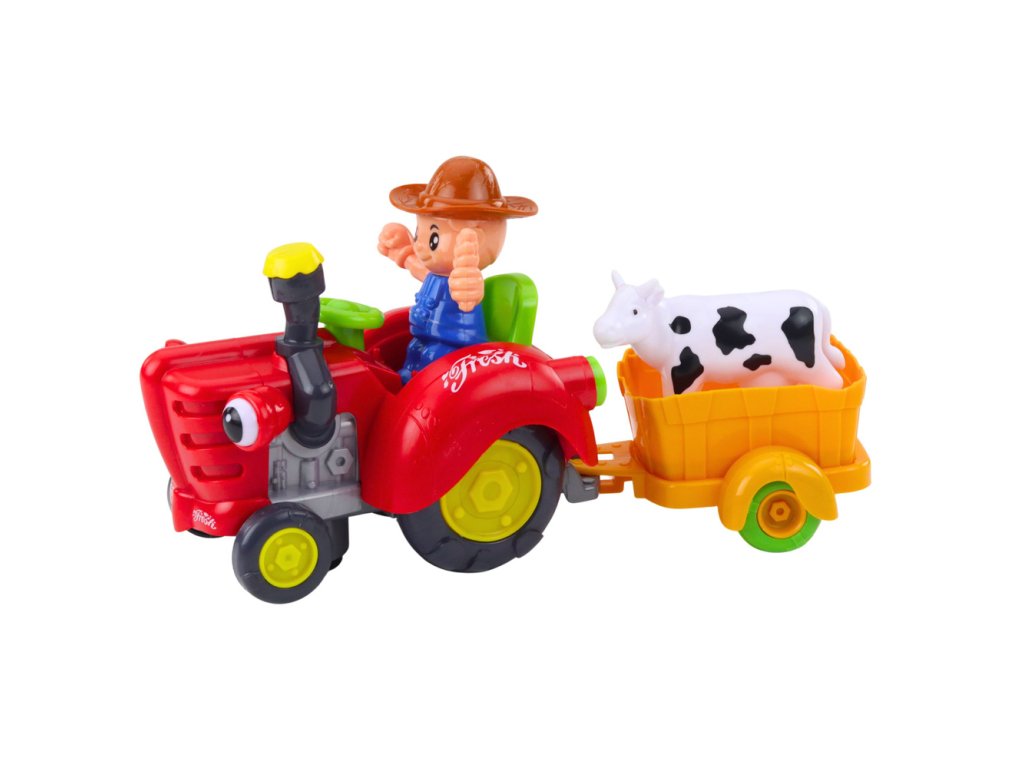 Farmářský traktor s přívěsem je unikátní vzdělávací hračka, která potěší každého malého fanouška zemědělských strojů a hospodářských zvířat. Po aktivaci se traktor pohybuje dopředu a dozadu a figurka farmáře se vesele houpe ze strany na stranu. Rozsvítí se také světýlka v očích a v ohništi, což hernímu zážitku dodává nádech zábavy.
