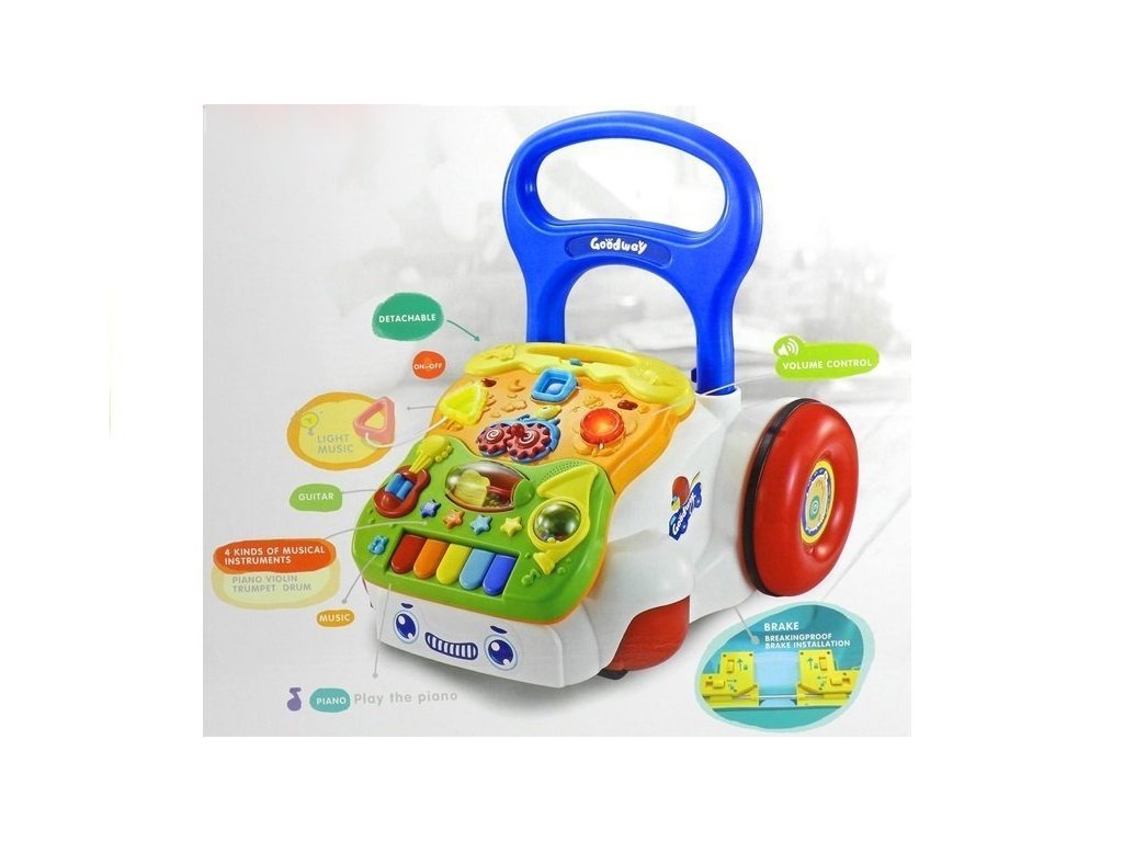Odstrkovadlo, které doporučujeme pro všechny děti, je nejen pomocníkem při učení chůze, ale také hračkou. Dětské chodítko je určeno pro nejmenší děti, což zaručuje bezpečnou konstrukci a výrobu z kvalitních materiálů. Ve spodní části výbavy je brzda, kterou můžete zapnout, pokud chcete, aby si dítě hrálo na místě. Panel v přední části chodítka je odnímatelný, což vám umožňuje hrát bez použití zbytku vybavení. S naším dětským chodítkem se budete starat o rozvoj svého dítěte již od útlého věku!