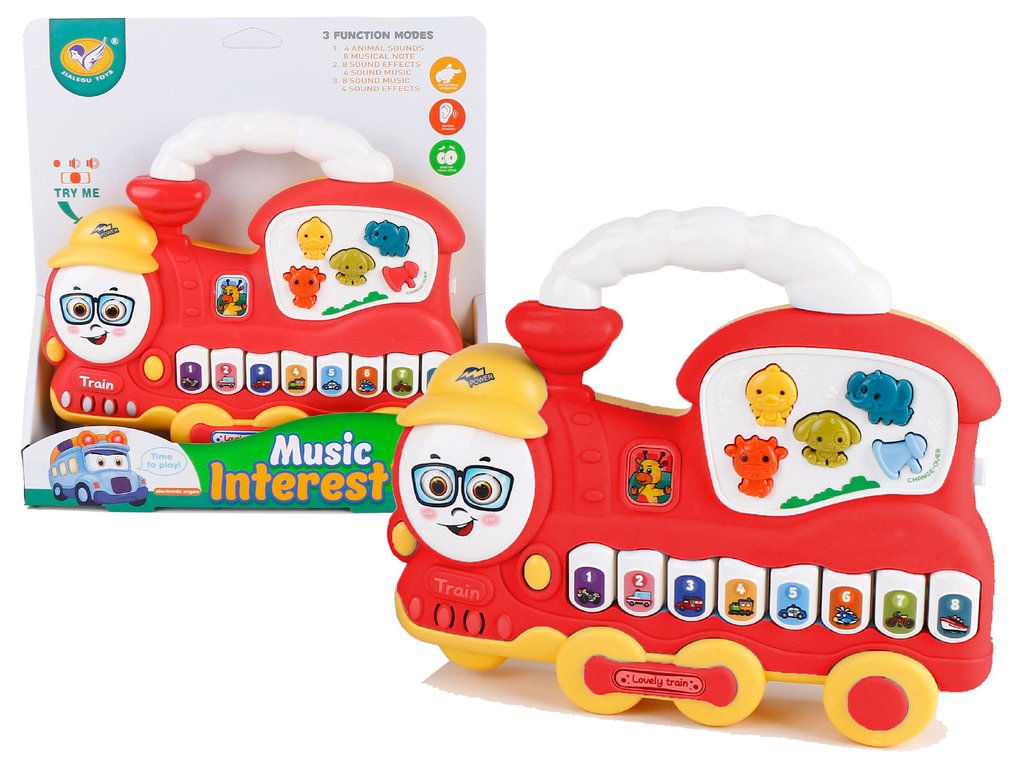 Interaktivní klavír Lokomotiva Zvuk Zvířata Zvuky vozidel Melodie Červená