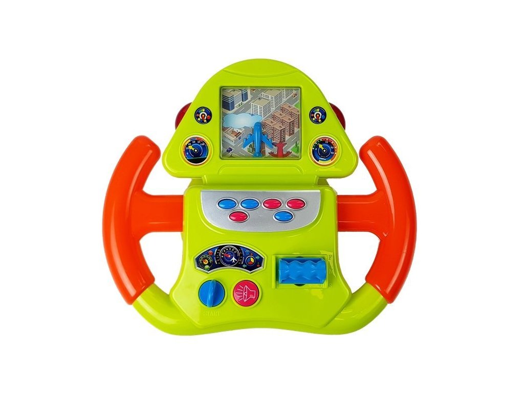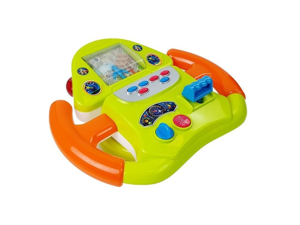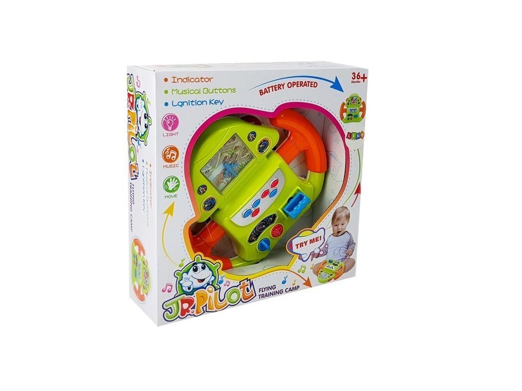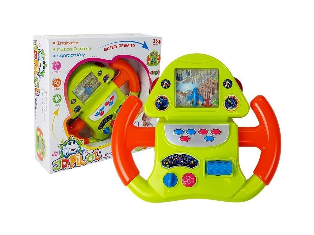 Když hračku zapnete, obraz města se pohne – pohled shora. Jsou na něm červená letadla, je potřeba opatrně hýbat volantem, aby se s nimi nesrazilo. Šest různých tlačítek je zodpovědných za různé zvuky, včetně: hlas motoru se mění a hudba hraje. Obraz z reproduktoru dává varovné signály při vzletu a přistání. A na boku celého volantu jsou červená světla. Barvy, tvary a zvuky vám umožní prozkoumat svět kolem vás.
