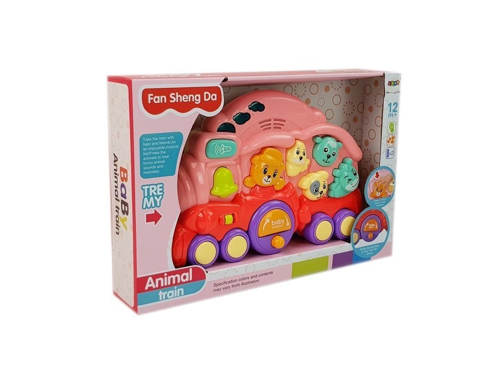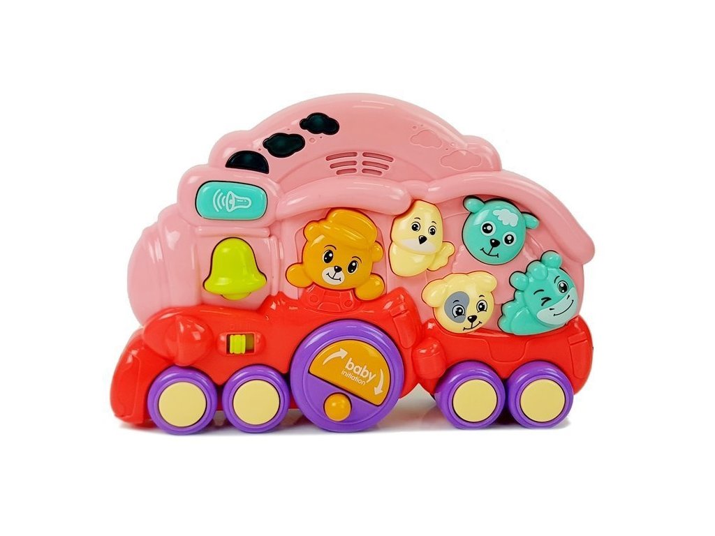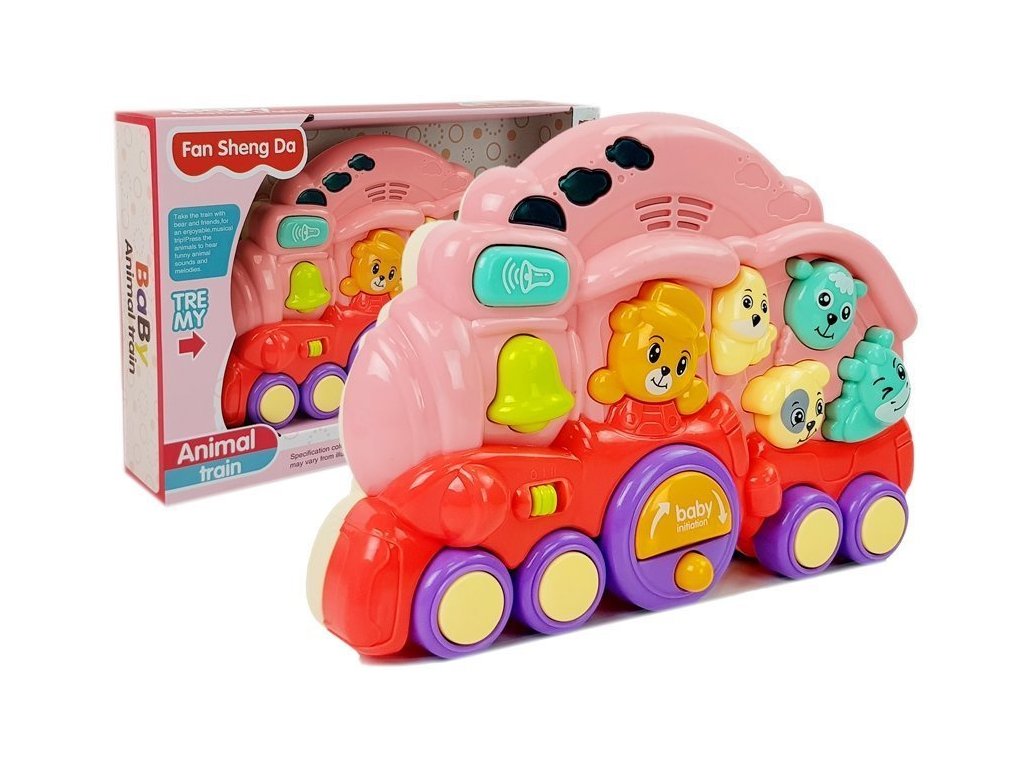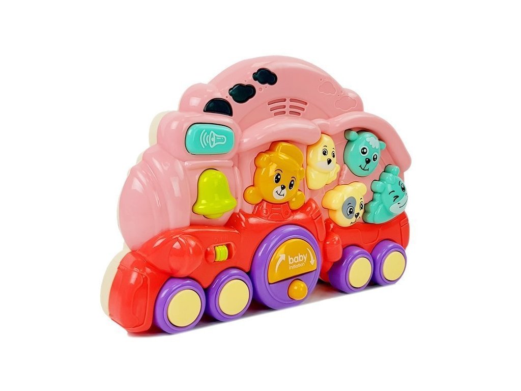 Interaktivní lokomotiva se zvířaty Zvuky zvířat Světelné efekty Růžová